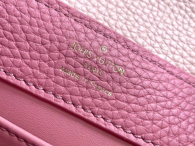 Premium, fully packaged, premium, genuine leather M20845, featuring a three-piece light pink floral pattern. This Capucines mini bag exudes feminine beauty: its Taurillon leather body is accented by a light-colored flap and top handle, while the enamel Monogram floral chain allows for shoulder carry. Attach the slim leather shoulder strap for even more styling possibilities. Details: 21 x 14 x 8 cm (Length x Height x Width).