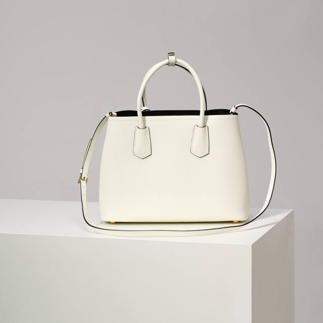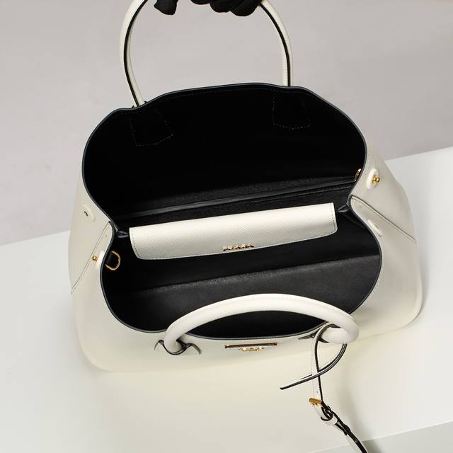 Premium Original Classic Style 1Bg775 White with Black Lining, Large Size 33cm, now in stock and fully upgraded. Made with imported coarse cross-grain cowhide and contrasting calfskin lining, top-grade brushed hardware, and matching handles. A timeless and stylish shopping bag. Dimensions: Length 33cm x Height 24.5cm x Bottom 14cm.
