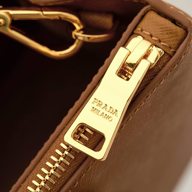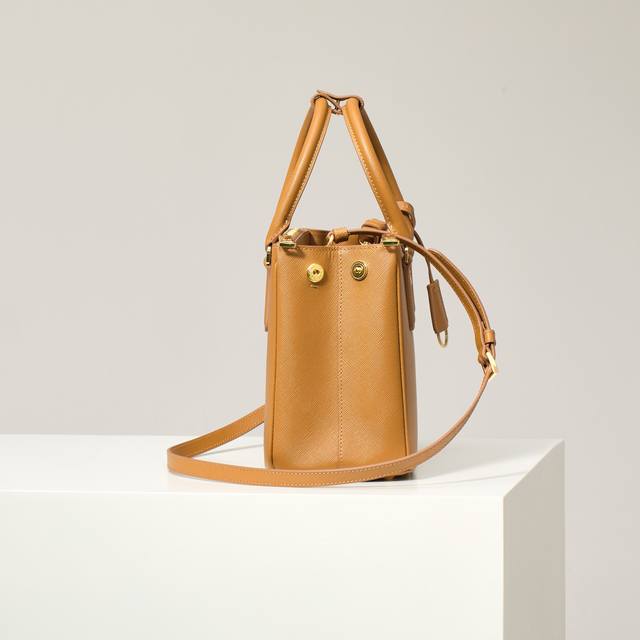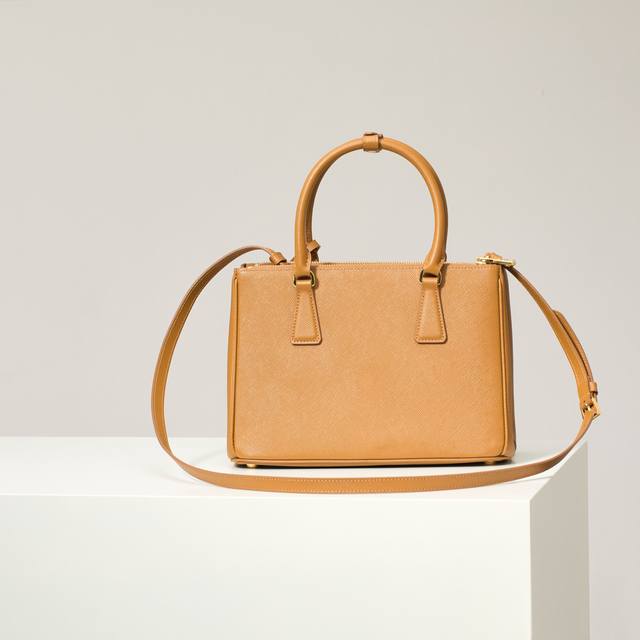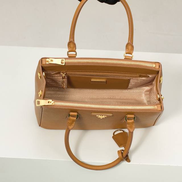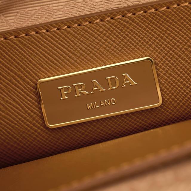 Premium Original Factory Medium Size Model: 1Ba863 Caramel Super Popular Killer Bag, Original Quality Saffiano Leather, Double Leather Handles, Detachable and Adjustable Leather Shoulder Strap, Gold-Plated Hardware, Triangular Leather with Metal Engraved Logo, Side Snap Closure, Two Zippered Exterior Pockets, Three Interior Pockets (including one zippered pocket), Prada Logo Lining, OEM Code 165, Dimensions: 28