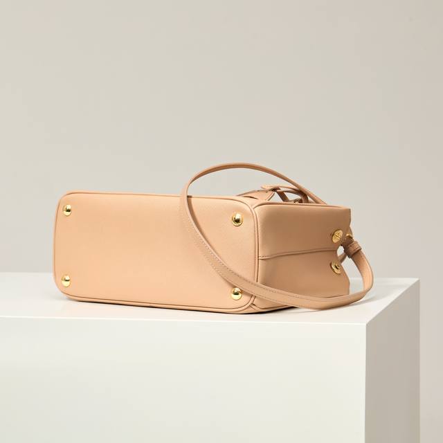 Premium Original Factory Medium Size Model: 1Ba863 Nude Pink Super Popular Killer Bag, Original Quality Saffiano Leather, Double Leather Handles, Detachable and Adjustable Leather Shoulder Strap, Gold-Plated Hardware, Triangular Leather with Metal Engraved Logo, Side Snap Closure, Two Zippered Exterior Pockets, Three Interior Pockets (including one zippered pocket), Prada Logo Lining, OEM Code 165, Dimensions : 28