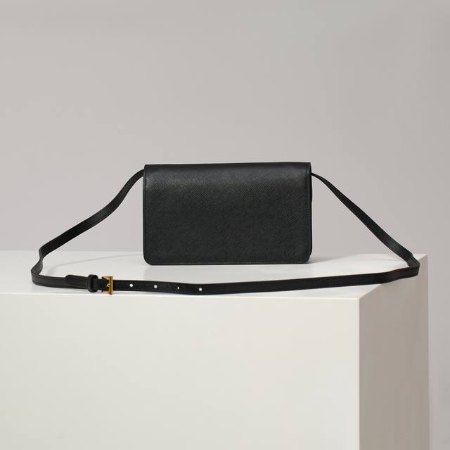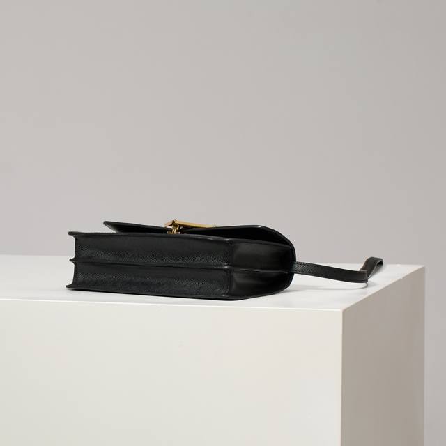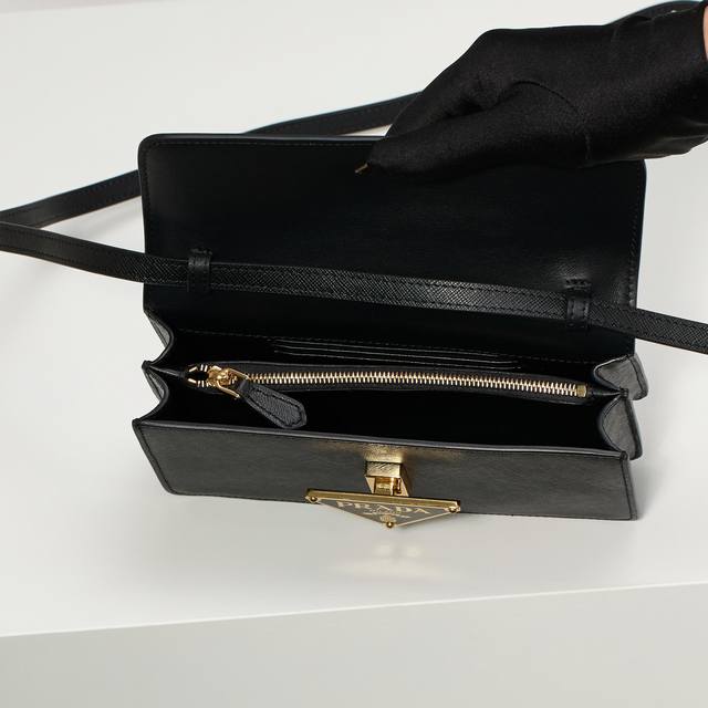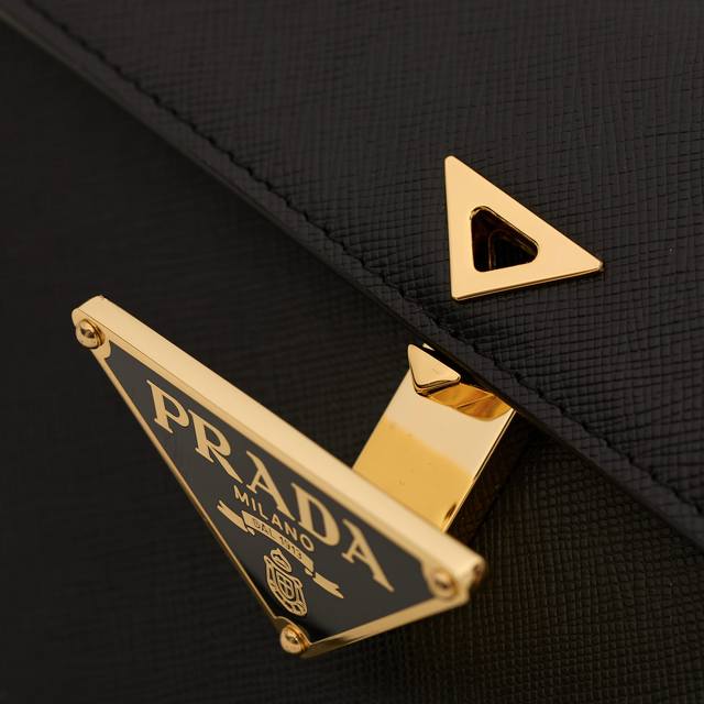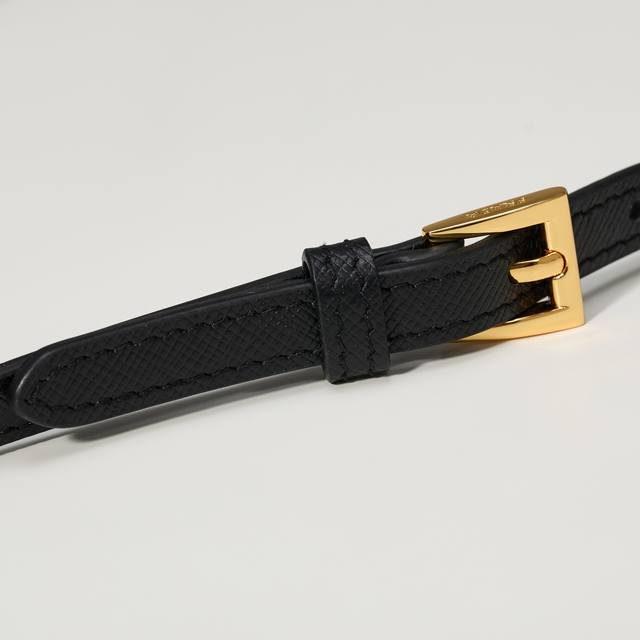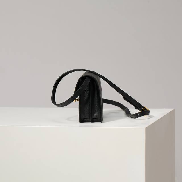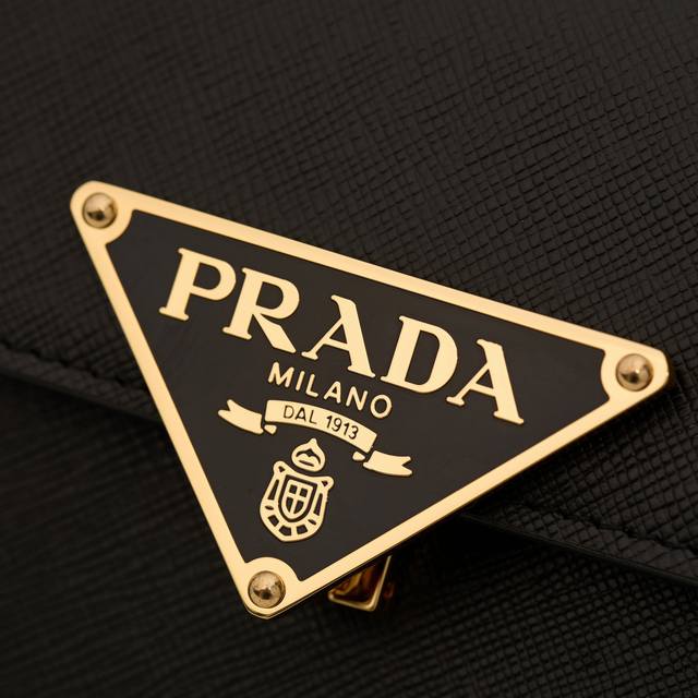 Premium Original Factory New Handbag 1Bd386 Black Mini This mini handbag is crafted from Saffano calfskin. The structured silhouette features interior pockets and card slots, and a metal signature triangular closure. It comes with an adjustable and detachable long shoulder strap and an imported lambskin lining. It's spacious enough for everyday use and a timeless must-have. Grab yours now! Dimensions: 24.5 x 18.5 x 11 cm DDD