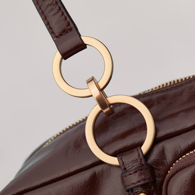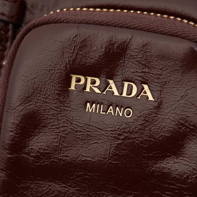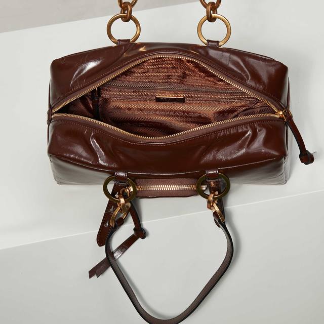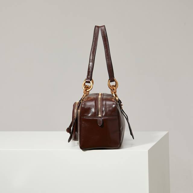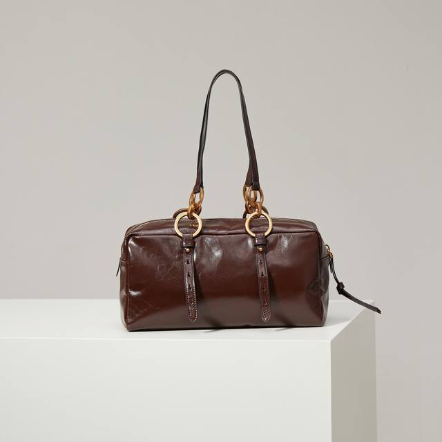 Premium Original Factory New Large Vintage Leather Handbag 1Bb138. Made of premium brown original factory oil-waxed leather, this handbag features a soft geometric design and is crafted from select vintage-style glossy leather. Vintage metal hardware and a classic zippered pocket add to its retro charm. Dimensions: 30cm (L) x 14cm (H) x 13.5cm (W).