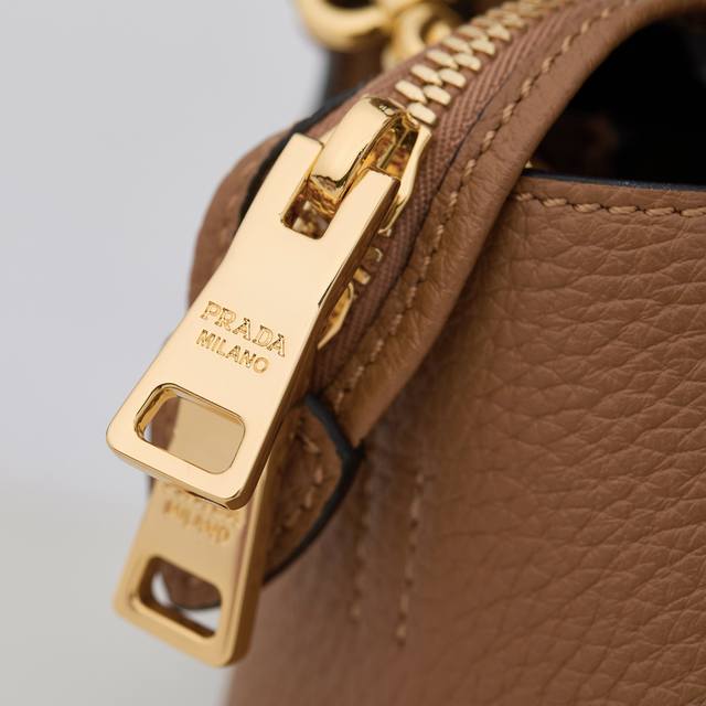 Premium Original Factory New Mini Shoulder Bag 1Ba362 Caramel Color with Double Shoulder Strap In Stock. This contemporary and exquisite leather handbag features a natural texture and a soft, rounded shape created by reverse stitching. Compact in size, it can be carried by hand or over the shoulder with the detachable shoulder strap, offering versatile styling options and refined elegance. The detachable and adjustable leather shoulder strap is 95cm long. Maximum length 107cm, minimum length 56cm, maximum drop 56cm, minimum drop 35cm. Features metal hardware, a metal logo on the front, a zip closure, and three compartments. The quality is superb; you'll fall in love at first sight! Ladies, grab yours now! Dimensions: 18*19.5*9Cm DDD