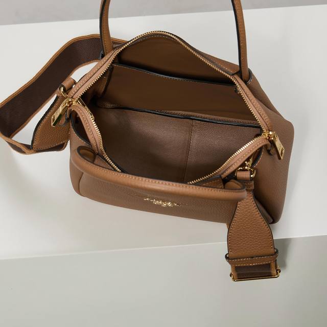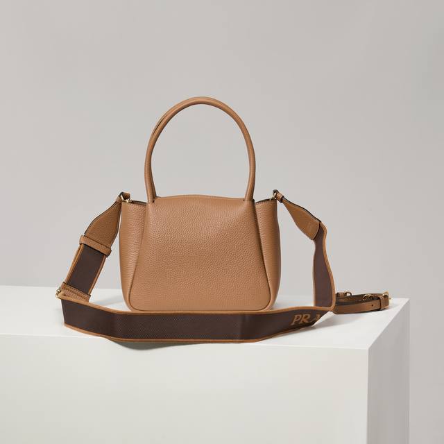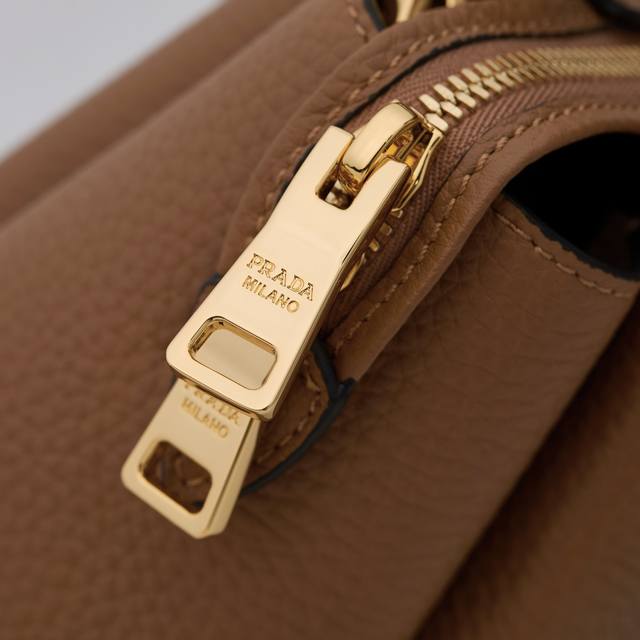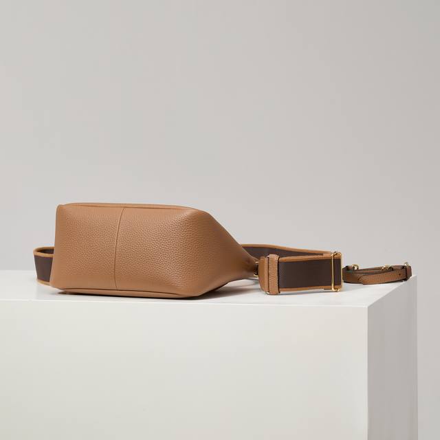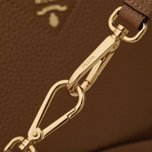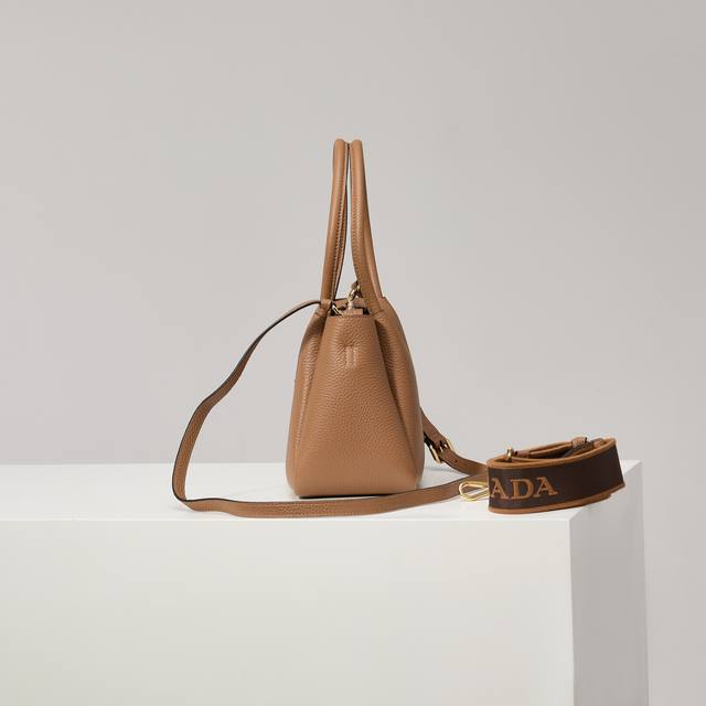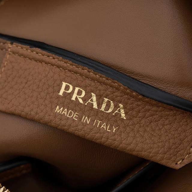 Premium Original Factory New Small Shoulder Bag 1Bc145 with Gold Buckle and Caramel Shoulder Strap. This bag is made of textured leather, with reverse stitching outlining its soft, rounded shape, showcasing a modern and sophisticated style. Its practical style, easy to carry by hand or over the shoulder, embodies a versatile design concept, blending urban elegance with a sporty vibe. Adjustable and detachable logo-printed webbing shoulder strap, 95cm long. Maximum length 107cm, minimum length 56cm, maximum drop 56cm, minimum drop 35cm, detachable and adjustable leather shoulder strap. Metal hardware, metal letter logo on the front, zipper closure, superb quality, love at first sight! Ladies, grab yours now! Dimensions: Length 23cm * Height 21cm * Width 10cm.