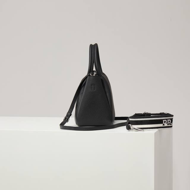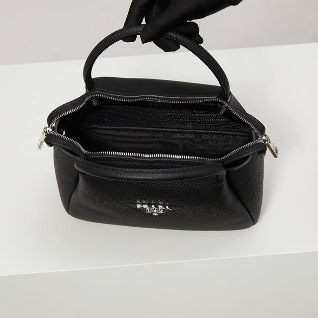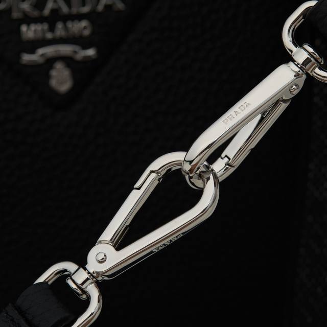 Premium Original Factory New Small Shoulder Bag 1Bc145 with Silver Buckle and Black Shoulder Strap. This bag is made of textured leather, with reverse stitching outlining its soft, rounded shape, showcasing a modern and sophisticated style. Its practical style, easy to carry by hand or over the shoulder, embodies a versatile design concept, blending urban elegance with a sporty vibe. Adjustable and detachable logo-printed webbing shoulder strap, 95cm long. Maximum length 107cm, minimum length 56cm, maximum drop 56cm, minimum drop 35cm, detachable and adjustable leather shoulder strap. Metal hardware, metal letter logo on the front, zipper closure, superb quality, love at first sight! Ladies, grab yours now! Dimensions: Length 23*Height 21*Width 10cm.