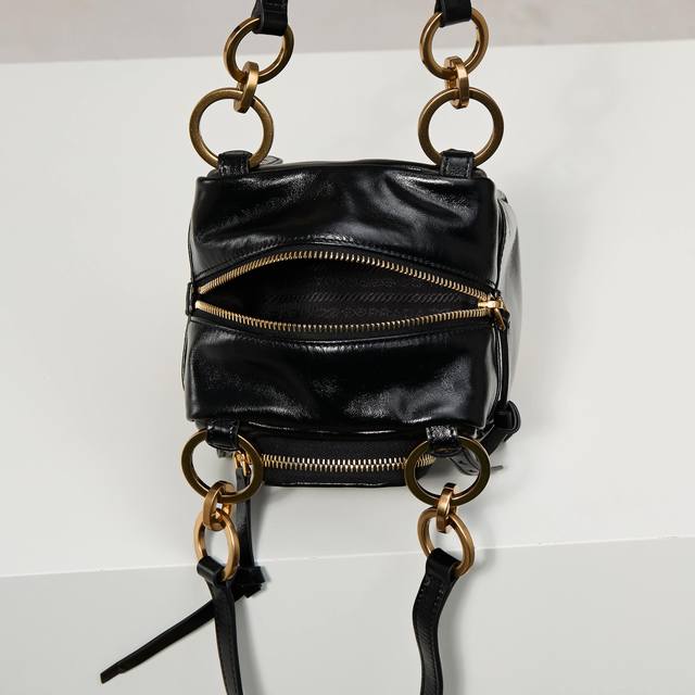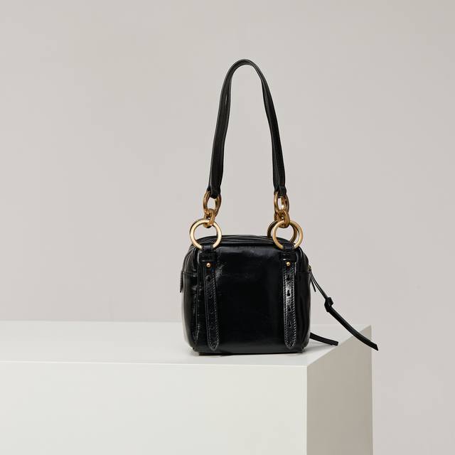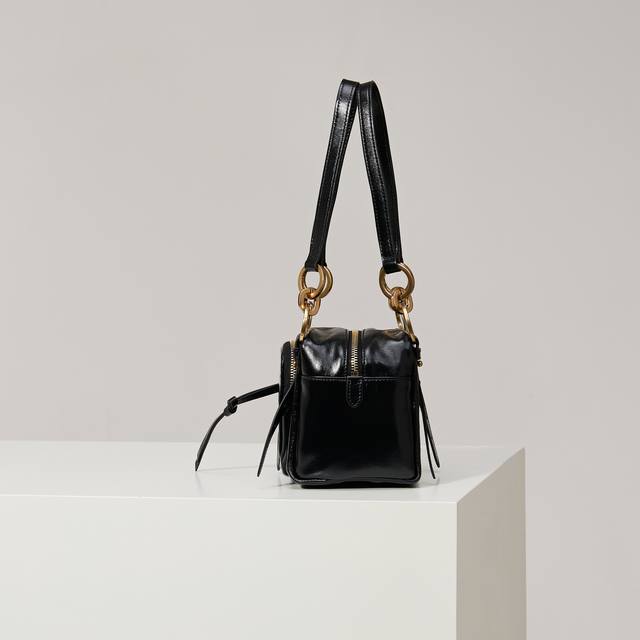 Premium Original New Small Vintage Leather Handbag 1Bb137 Black Original Leather Square Handbag. Made from select soft, vintage-style leather. Vintage metal hardware and a classic zippered pocket exude retro charm. Leather handles, 25cm long. Dimensions: 14.5cm (L) x 14cm (H) x 13.5cm (W). (DDD)