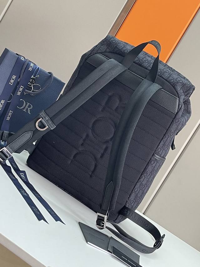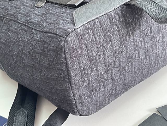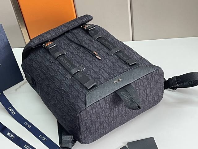 Premium Original. This Dio Explorer backpack draws inspiration from the principles of mountaineering, reinterpreted with a couture flair. Crafted from signature beige and black Oblique print fabric, it's accented with the Dio logo on the front for a touch of class. The flap features a zippered pocket, and the main compartment is spacious enough for everyday essentials. Side patch pockets keep a water bottle within easy reach. Its practical functionality completes any casual look.
