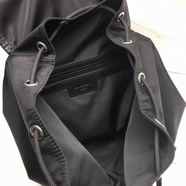 Givench new backpack, men's drawstring casual backpack made of imported nylon canvas and cowhide. The handsome design and matching will capture the hearts of many young people. Dimensions: 30