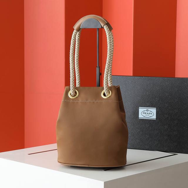 This Re-Nylon handbag is designed with nylon and calfskin. The unique combination adds a charming touch. The sliding rope handle highlights the bag's versatility, allowing it to be carried by hand or across the shoulder. Premium hardware. Spacious and stylish, it's a timeless favorite. Hurry and get yours!