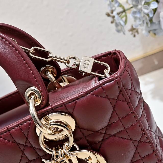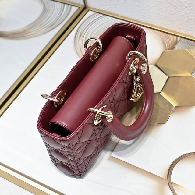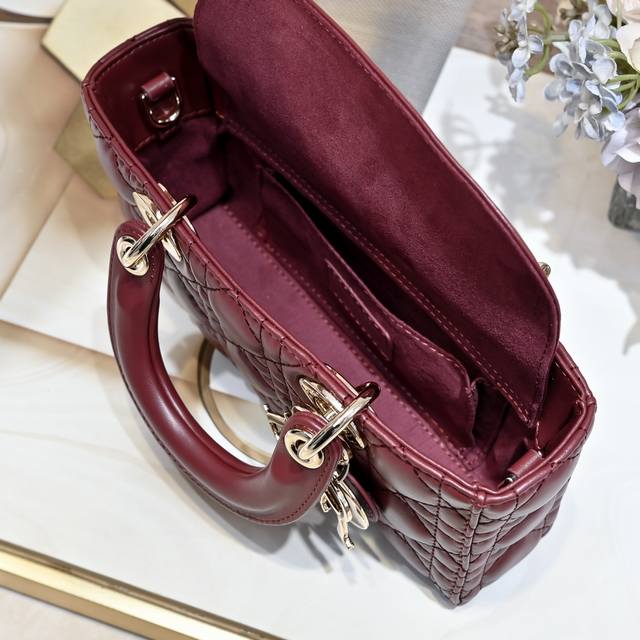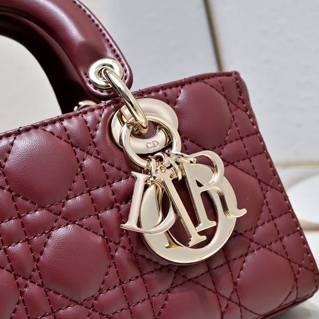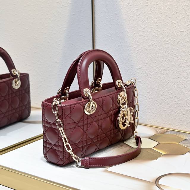 Small Horizontal Burgundy ____D-Joy Small 0541 Flap with two magnets matching the sheepskin pattern series. The newly released size is smaller and more exquisite. A hot seller! The bag comes with two shoulder straps, offering multiple carrying options. It looks beautiful and stylish. The classic diamond quilted design, paired with glossy patent leather, is elegant and fashionable. Size: 22*6*12Cm