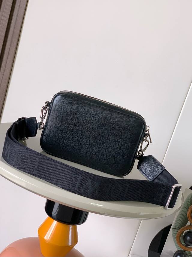 Small soft grained cowhide pebble messenger bag The pebble messenger bag features a practical and sophisticated design and features a double signature Anagram pebble. This small version is made of soft grained cowhide *Removable and adjustable L0Ewe webbing *Zip closure *One front pocket with magnetic closure, one internal slip pocket *Suede lining *L0Ewe silver hot stamping, Anagram pebble