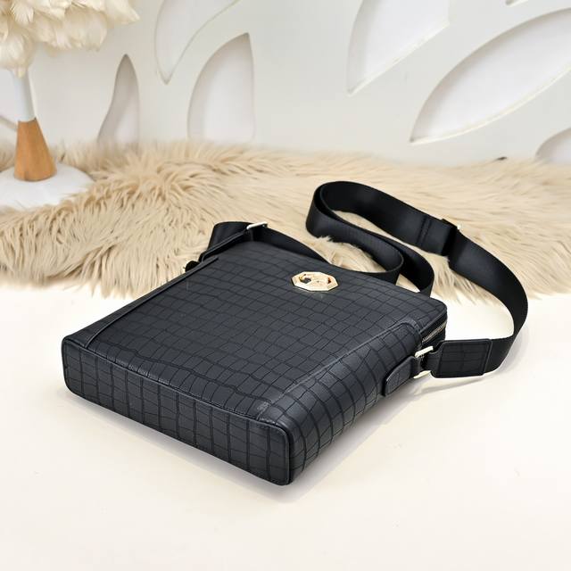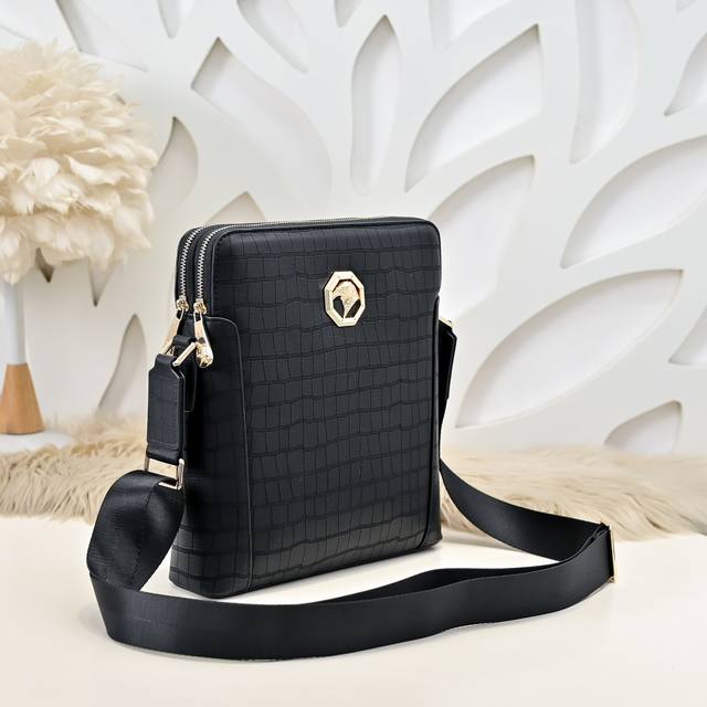 Stefano Ricci-The latest men's messenger bag with double pulls. Made of imported calfskin. Soft leather with clear visible texture. Superb feel. Noble hardware. Fashionable eagle head gold label. High-end quality. Upscale. Casual and versatile. Size: 26.24.6Cm