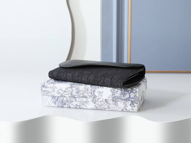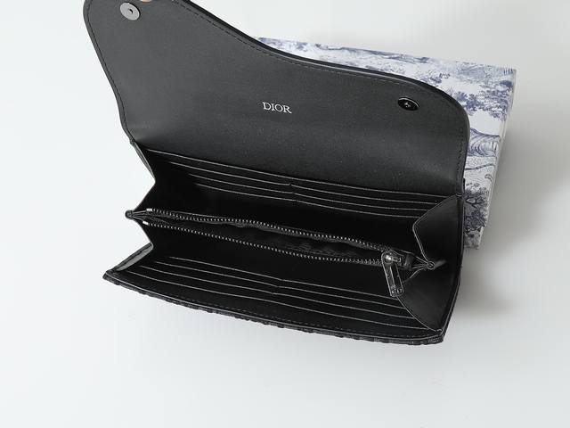 Style No. 315 Black printed fabric material is carefully crafted, with the same color cowhide saddle profile flap, 14 card slots, 1 central zipper pocket, size 19.8Cm-11Cm-3.5Cm