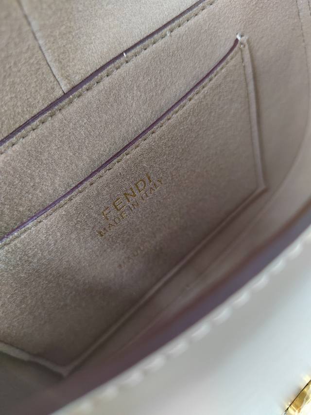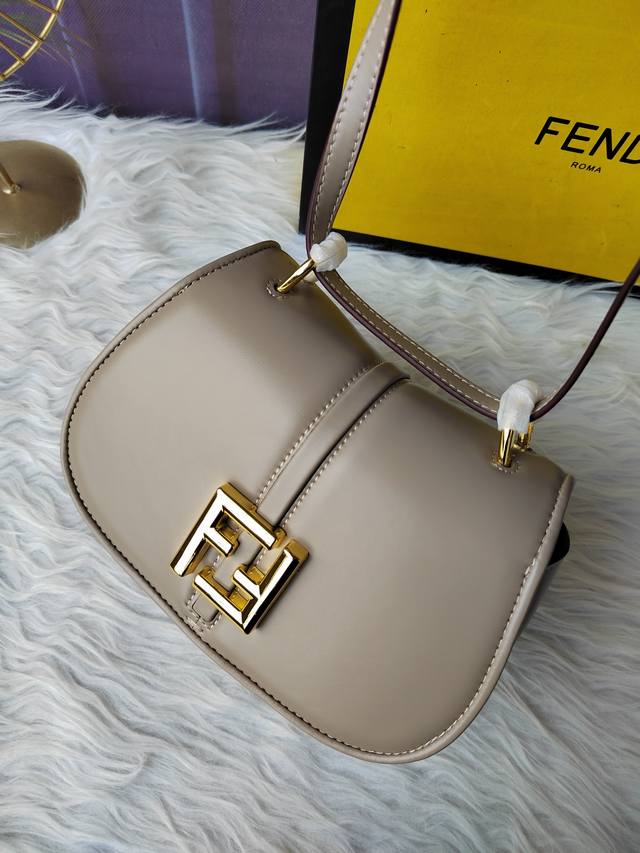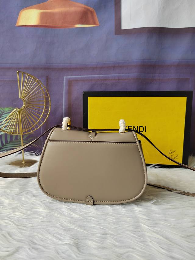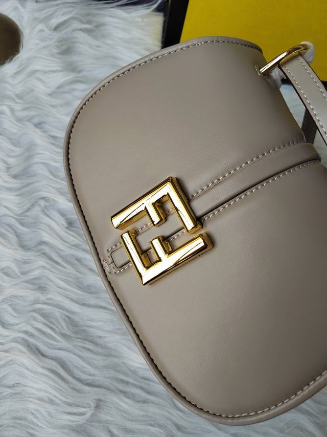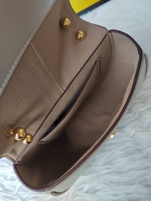Style No. 8Bs082 Apricot small crossbody handbag with feminine solitary lines, long flap, metal Ff logo, detachable shoulder strap, size 21cm-15cm-6.5cm