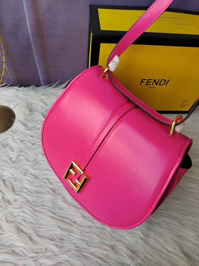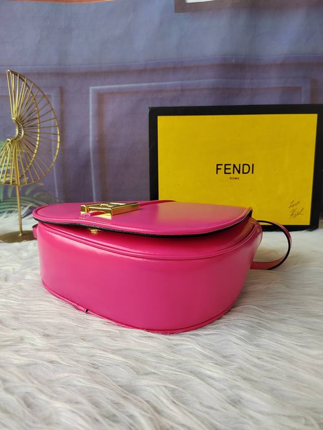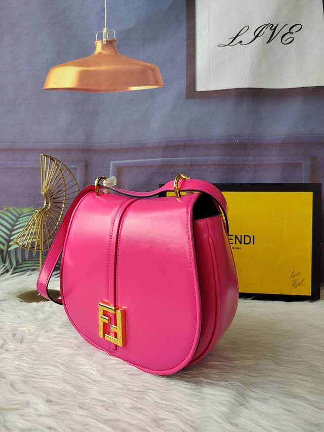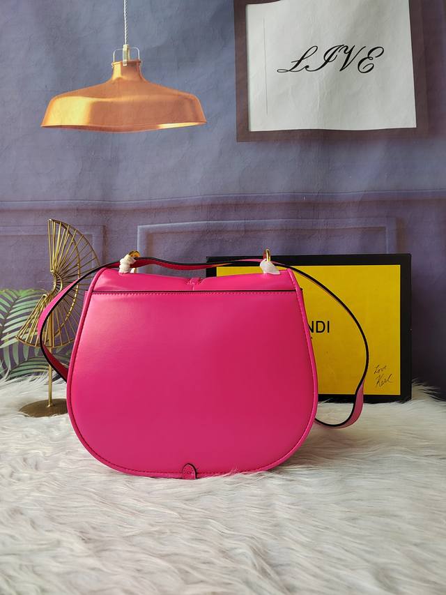 Style No. 8Bt366 Rose red medium crossbody handbag, with feminine solitary line design, equipped with a long flap, metal Ff logo, detachable shoulder strap, size 25cm-20cm-7cm