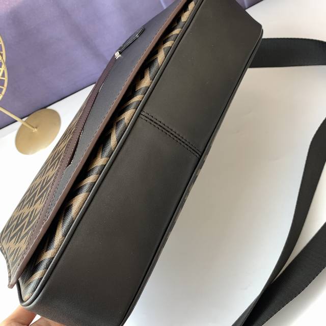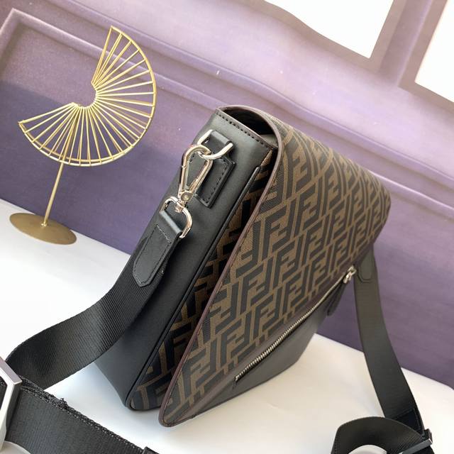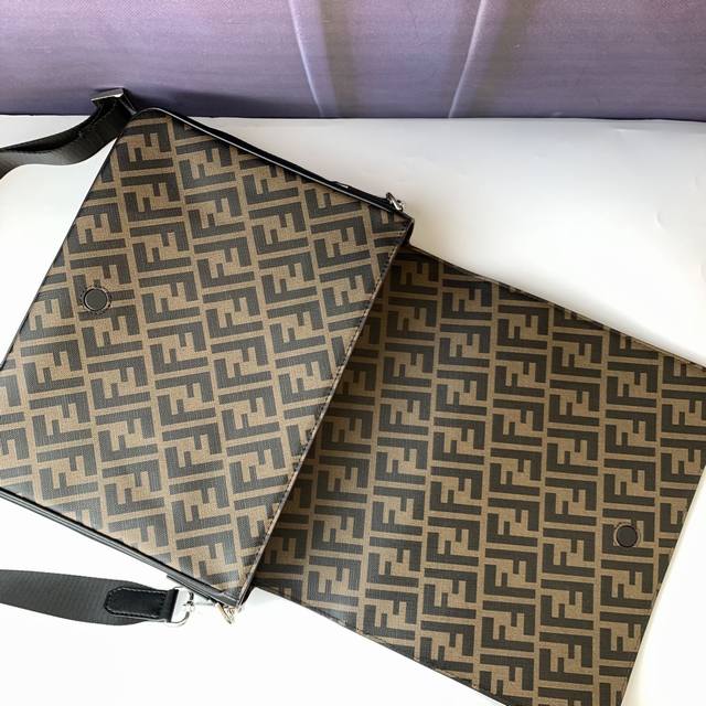 Style No. F7Va521 Coffee, spacious messenger bag with flap and magnetic snap, zipper pockets on the front and inside, adjustable and detachable shoulder strap, brown detail inlay. Size: 30.5Cm-25Cm-10Cm