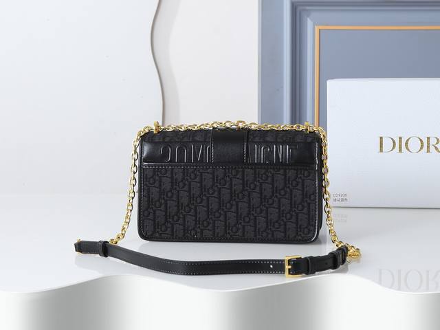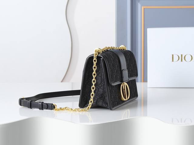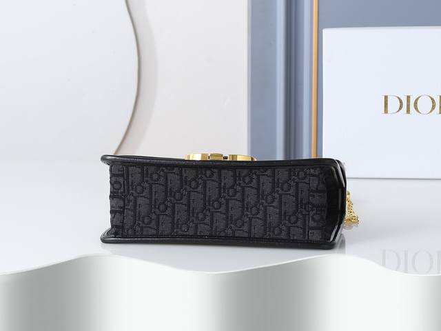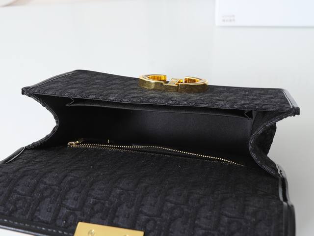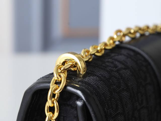 Style No. M9208, black printed fabric, this chain bag features a flap closure with a vintage gold-plated metal CD buckle, an interior zip pocket, and a cell phone pocket. Dimensions: 25cm-16.5cm-9cm.