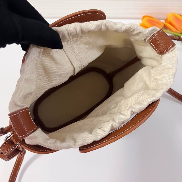 The Beluga Mini Bag is designed to enhance everyday life. It features a cotton and linen interior pocket with a discreet, practical drawstring. The removable and adjustable shoulder strap allows it to be worn as a shoulder bag or crossbody. Model: Original leather and hardware. Dimensions: 23 x 8 x 18.5 cm.