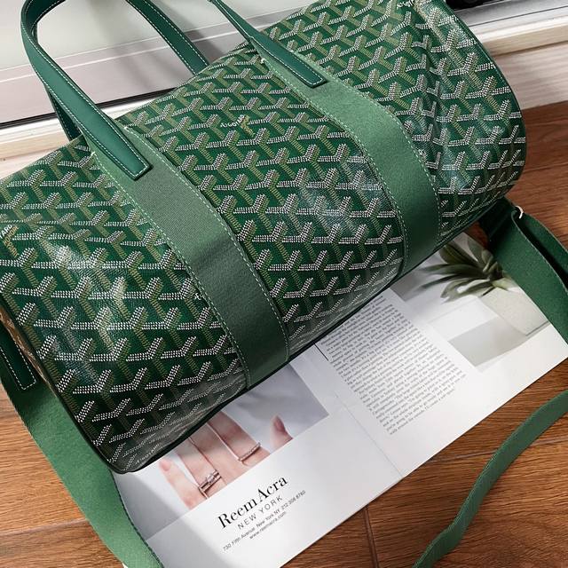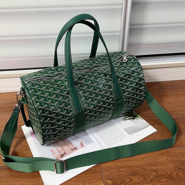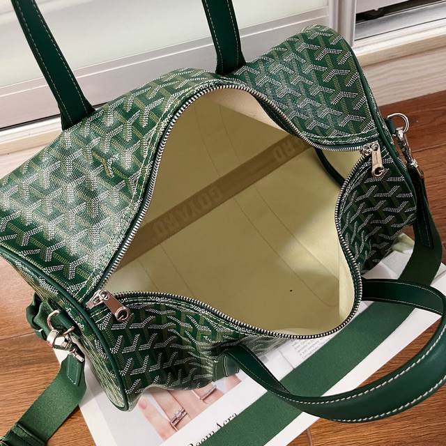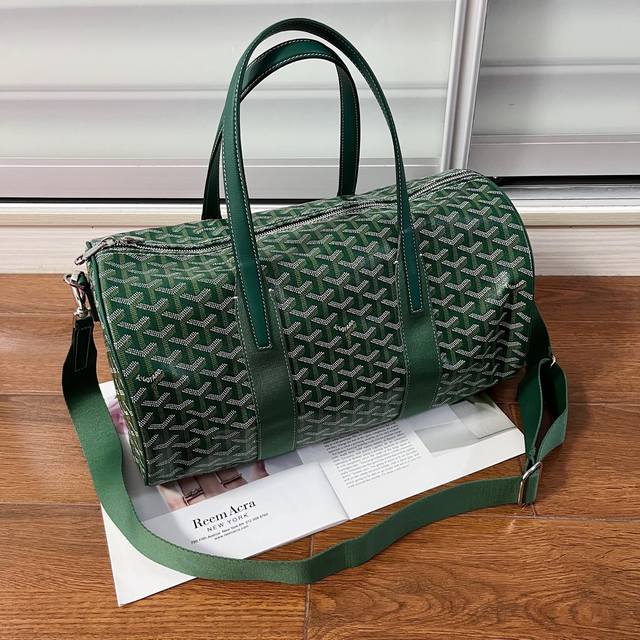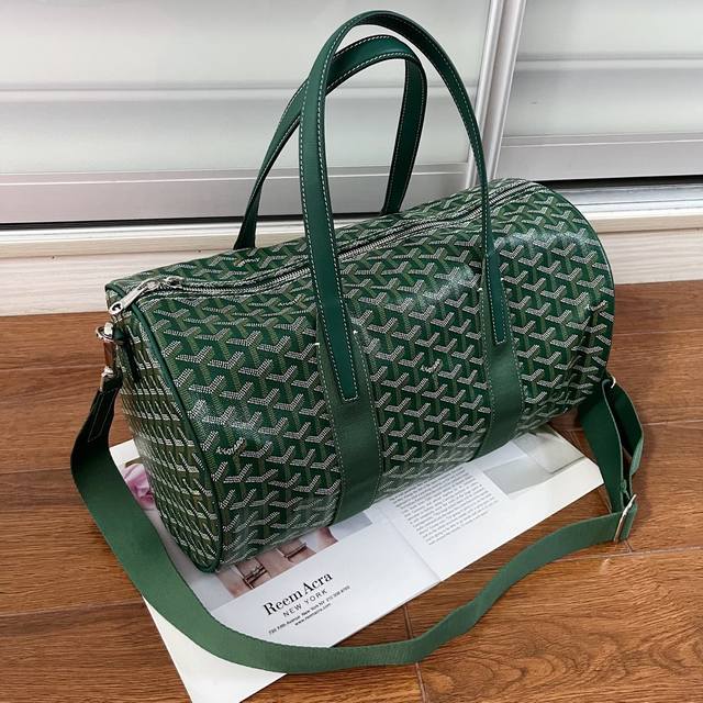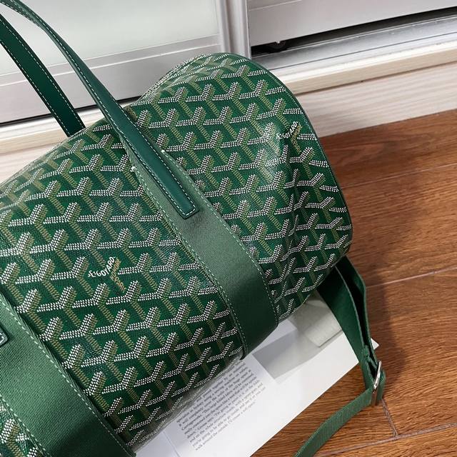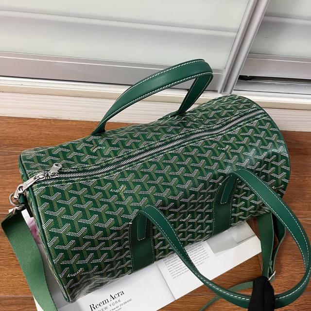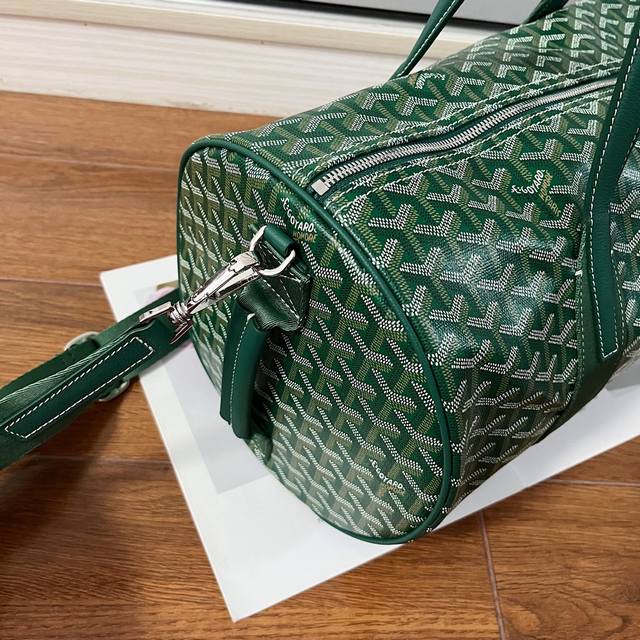 The Goyard Barrel sports travel bag, at 40cm, is perfect for everyday use, serving as a gym bag or a great companion for short trips. The double zipper design makes it easy to use. An extra handle on the side adds to its carrying function. The bag is very soft, lightweight, and has a large capacity. Side buckles allow for shoulder carrying with the medium-sized strap. Original leather, original hardware. Dimensions: 40*23*23cm.