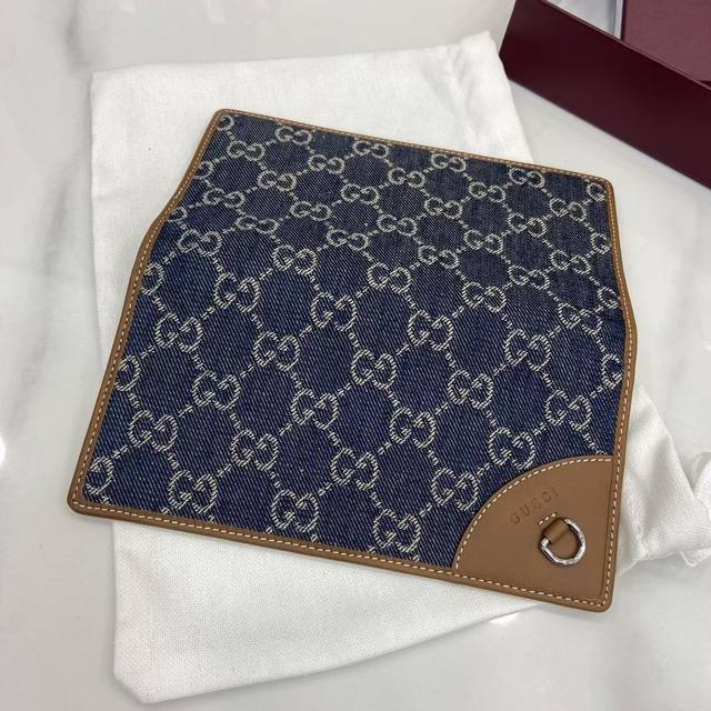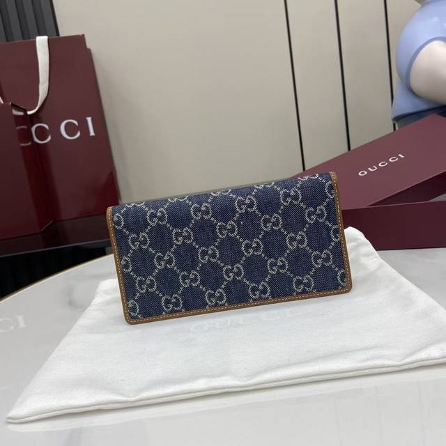 premium edition. The new Gg Emblem collection reinterprets the brand's timeless elegance and exquisite craftsmanship. This blue and dark brown mini wallet reinterprets the brand's new small accessories collection, crafted from the new Gg monogram canvas. Carefully designed with multiple compartments and card slots, it cleverly incorporates a practical snap closure. Model: 821802.