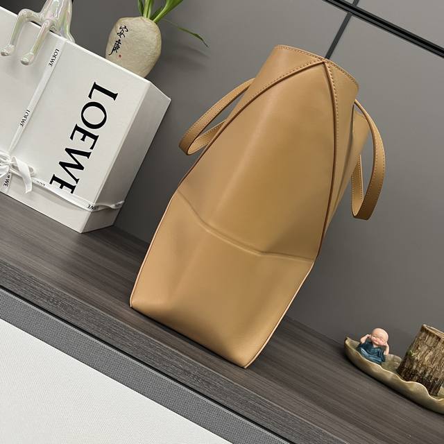 The new Lw small glossy calfskin Puzzle Fold Tote features the iconic geometric lines of the signature bag, redesigned with graphic and architectural panels to allow it to fold completely flat. It is adorned with an understated Lw branding logo and can be carried by hand. The suede lining features Lw gold foil stamping. Size: 25.5*14.5*31.5CM. Model: 052316.