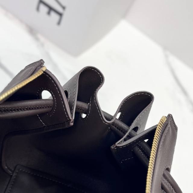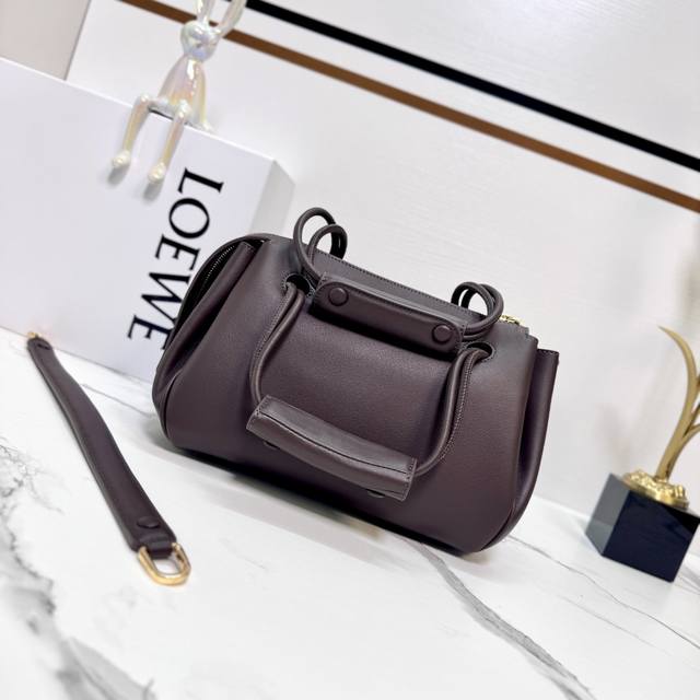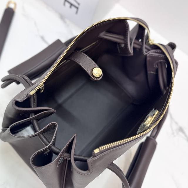 The new small soft cowhide Madrid handbag from Luojia. The Madrid features a soft, structured trapezoidal shape with gussets, adjustable handles, and a pebble closure. This small version is crafted from soft cowhide. It can be carried on the shoulder, crossbody, or by hand. *Adjustable shoulder strap with leather extension. Anagram pebble magnetic closure and zipper closure. One interior zipper pocket and one interior card slot. Anagram pebble metal feet. Nappa leather lining. Size: 23.5*10*19cm. Model No.: 012452.