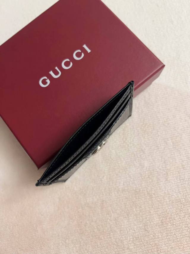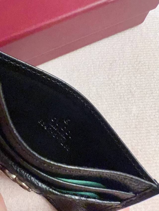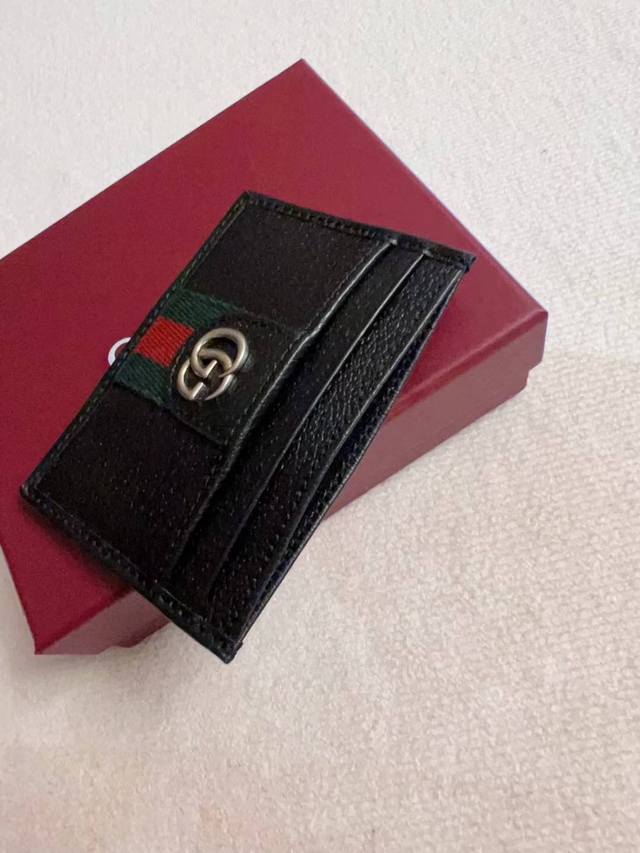 The premium new Ophidia collection features a revolutionary black colorway and refined leather, showcasing the brand's iconic silhouette with new functionality. This card holder is crafted from soft leather with a natural sheen, expertly embellished with the Double G logo and Web detailing.