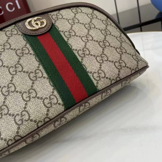 The premium new Ophidia collection showcases fresh silhouettes and practical, functional designs, expertly crafted in signature beige and brown colorways for a soft, refined bag. This cosmetics bag can also be used to store everyday essentials.