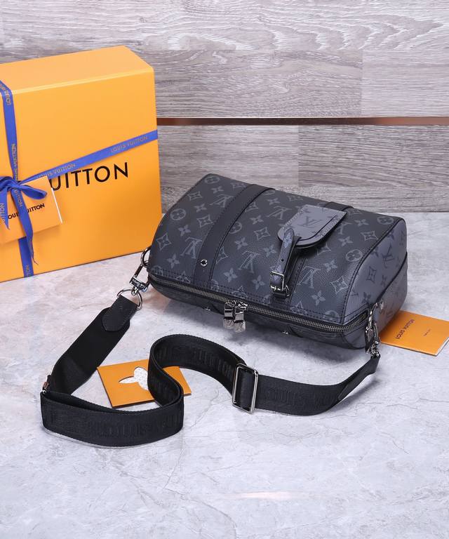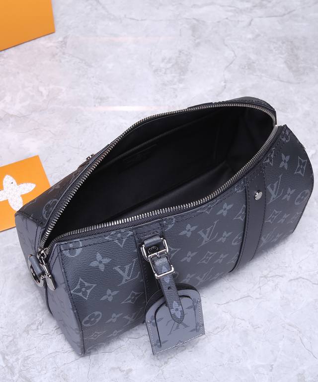 The top-grade original steel hardware Keepal travel bag concentrates on the classic configuration to create this trendy urban handbag. The side design interestingly presents the Monogram pattern with a flip effect, which cleverly echoes Kim Jones's Upside Down series in 2018. The Monogram Eclipse canvas body is paired with a detachable shoulder strap, which can be easily carried for daily needs. Monogram Eclipse and Monogram Eclipse Reverse coated canvas, cowhide trim, fabric lining, double zipper closure, large main compartment, detachable name tag, detachable, adjustable shoulder strap! ! Model: M45936; Size: 27X1 7X13Cm