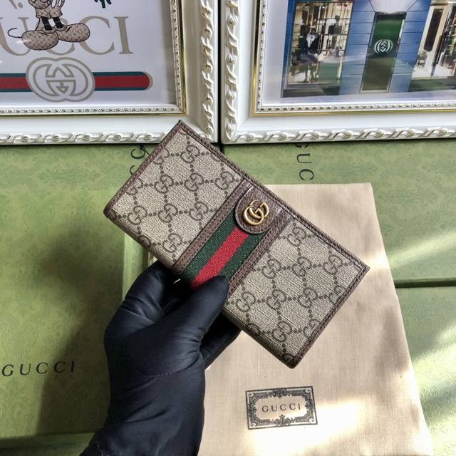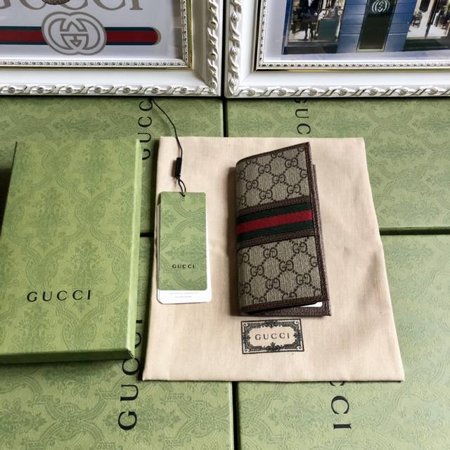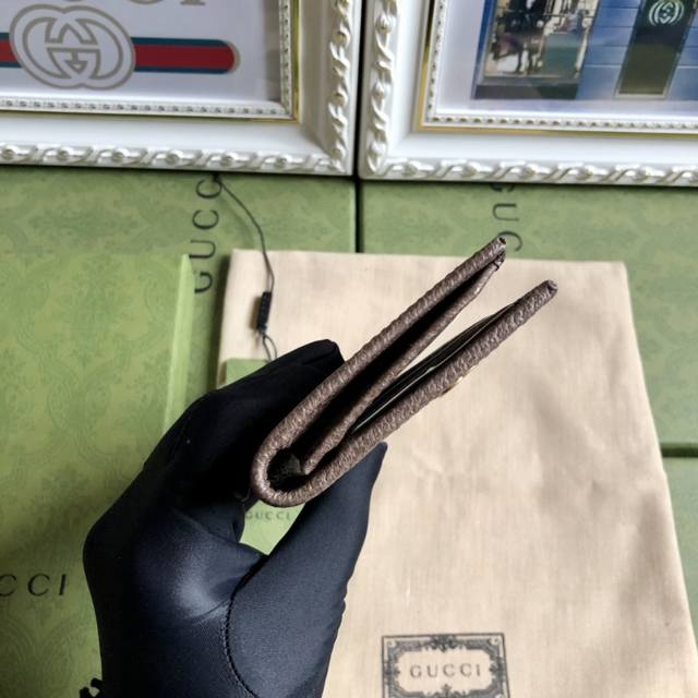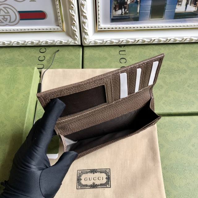 This sleek, elegant wallet features the Gg collection, accented with tonal leather trim and an Interlocking G logo, showcasing the allure of a timeless design. Made of Ggsupreme canvas, a sustainable material. Leather trim. Viscose lining, oval Interlocking G leather logo. Two bill compartments. Dimensions: 9 x 17.5 cm. Color: Brown PVC. Model No. 672987.
