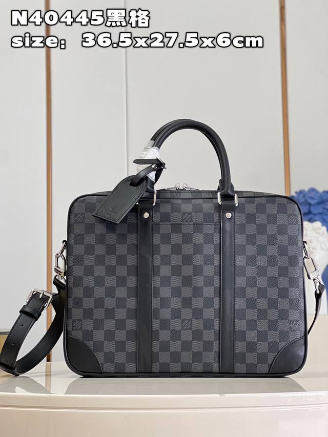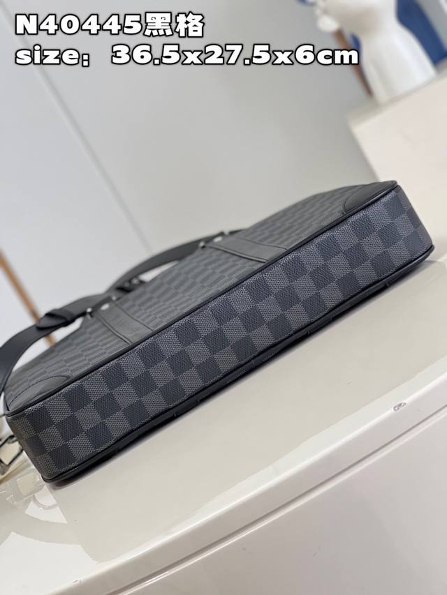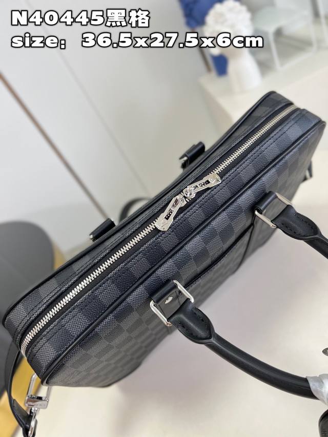 Top-Grade Original N40445 Black Grid This Voyage Small Briefcase Is Made Of Damier Graphite Coated Canvas With Leather Side Straps Reinforced Corner Top Handle And Designer Outer Pocket For Easy Storage Of Smartphones Padded Inner Compartment Can Accommodate A 13-Inch Laptop Removable And Adjustable Shoulder Strap For Comfortable Shoulder Carrying Size 36.5X27.5X6Cm
