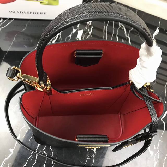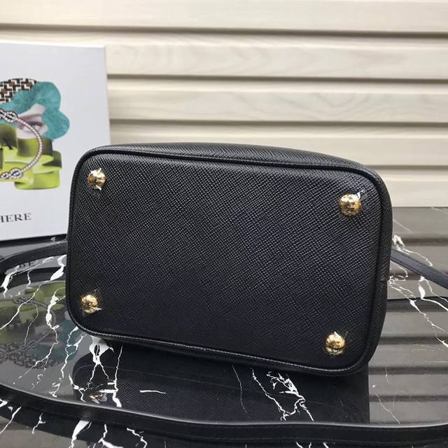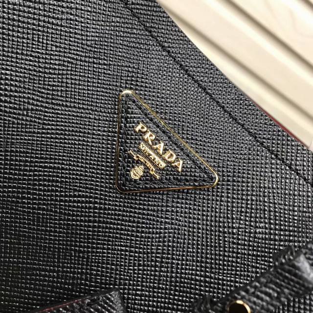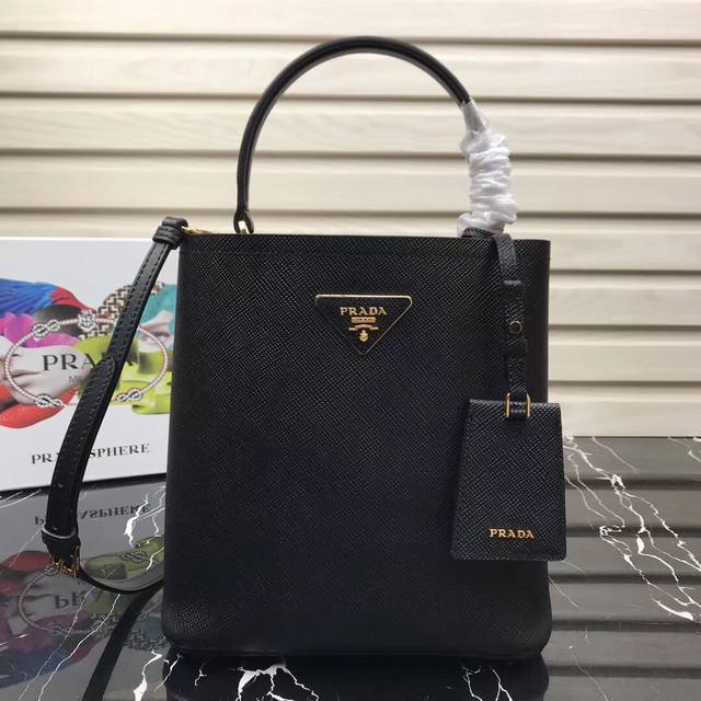 Top-grade original single p home latest hit 1Ba212 bucket bag Return of goods supported Counter comparison Saffiano leather material Leather handle Detachable and adjustable leather shoulder strap Detachable leather name tag with metal logo Leather-covered magnetic buckle closure Central opening Saffiano leather triangle logo Contrast color soft sheepskin lining Dimensions: 22