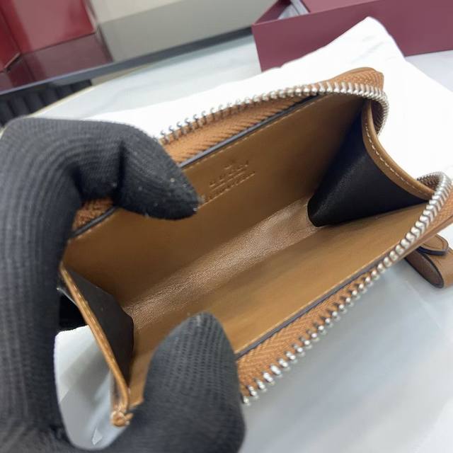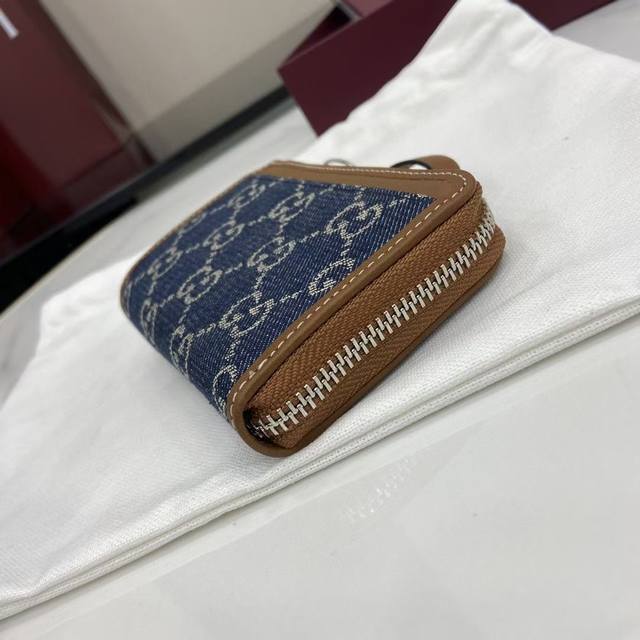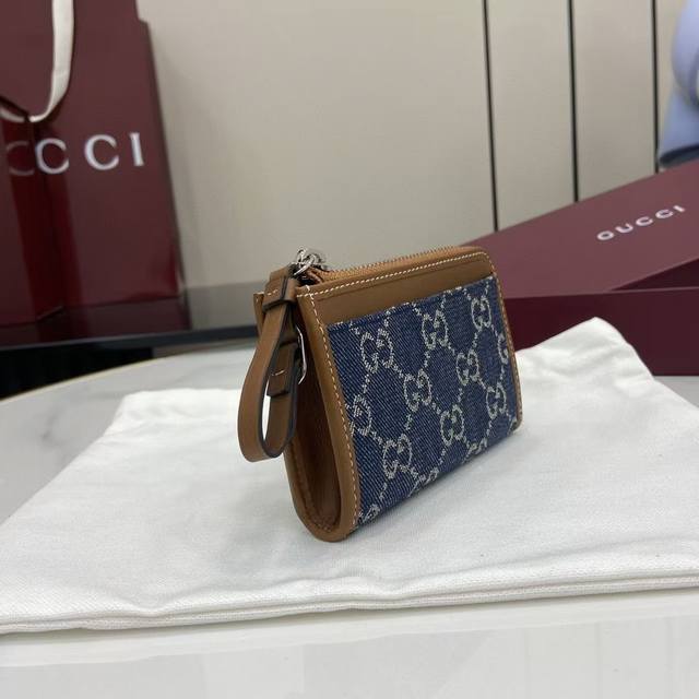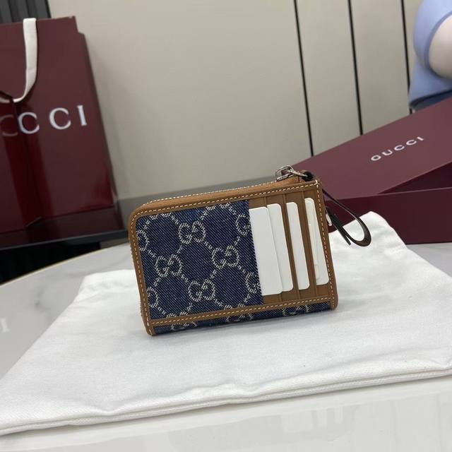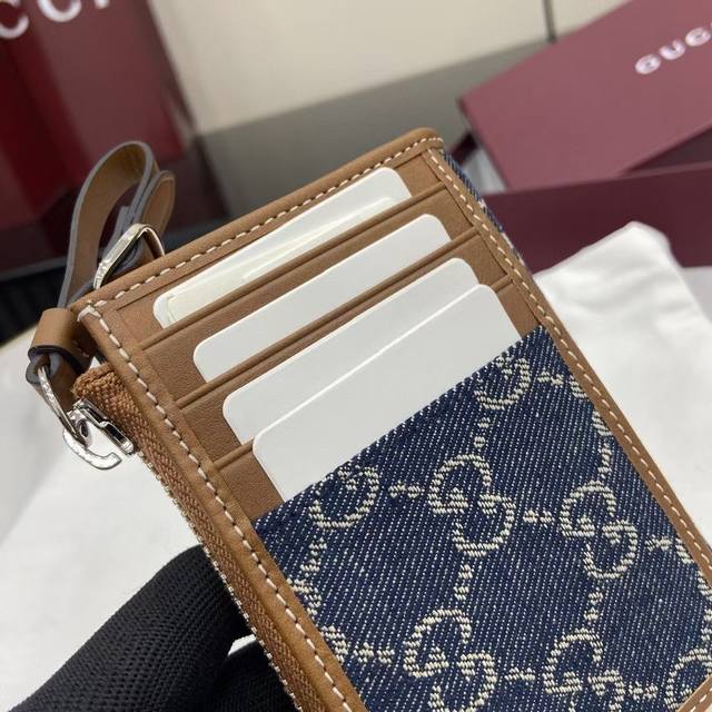 The Gg Emblem series reinterprets the classic pattern with creative design and innovative functions, creating a treasured collection for years to come. This blue and dark brown card holder reinterprets the brand's new small accessories series, made of denim with the new Gg letter pattern. The multi-compartment design is convenient and practical, and the brown leather wristband adds texture.