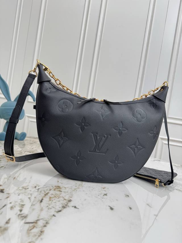 This Loop Hobo handbag is crafted from soft Monogram Empreinte cowhide leather in a trendy half-moon shape that fits the body perfectly, offering ample space for urban travel. The detachable zippered pocket can also be used independently, and can be attached with a chain or adjustable shoulder strap for a variety of carrying options. 38.0 x 26.0 x 10.0 cm (L x H x W)