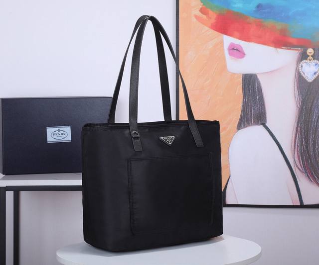 This Nylon Tote Bag Combines Fashion Design And Functionality, With A Long Saffiano Leather Handle, Quite Unique, Top Two-Way Zipper Closure, Front External Pocket