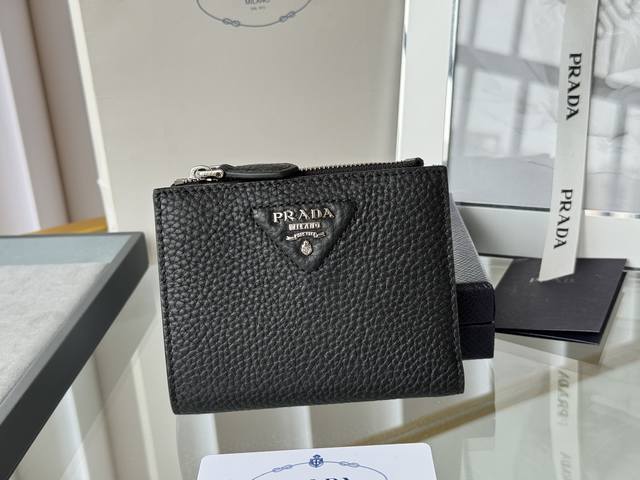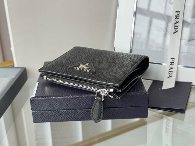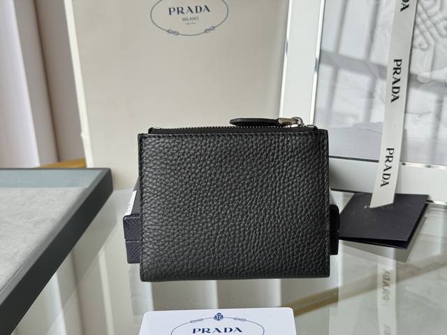 Unisex short wallet, model 1ML050, made of pebbled cowhide. Eight card slots, one bill compartment, one zippered coin pocket. Dimensions: Length 11.5cm, Height 9.5cm. The workmanship is meticulous and neat, as shown in the picture.
