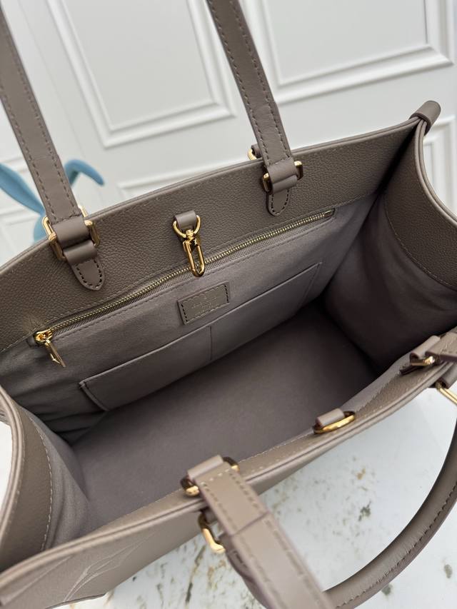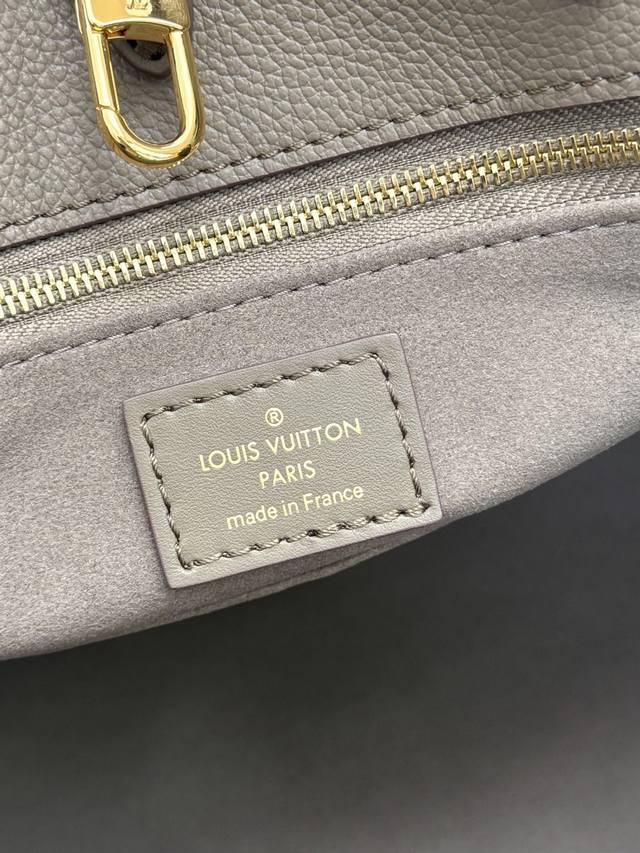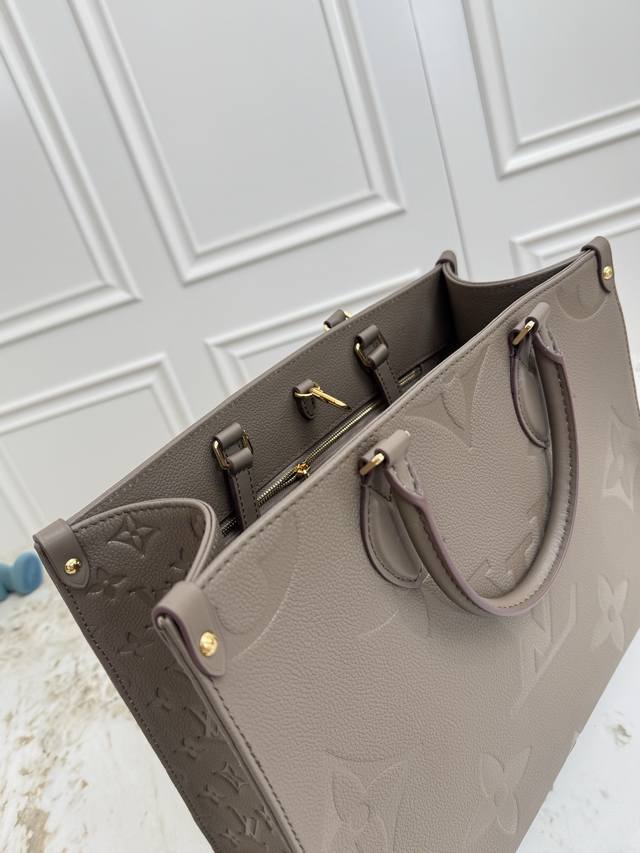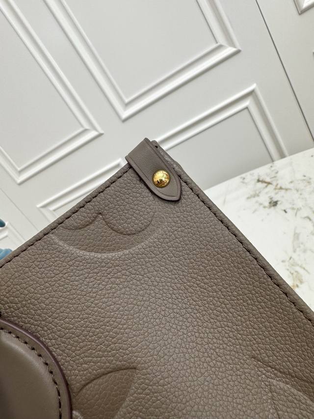 . This premium, original Onthego medium handbag is crafted from Monogram Empreinte leather, with a grainy texture accentuating the Monogram embossing, adding a touch of elegance to the angular shape. The ample microfiber interior accommodates a laptop, while the rolled leather handles and long shoulder strap allow for versatile carrying options. 35.0 x 27.0 x 14.0 cm (Length x Height x Width)