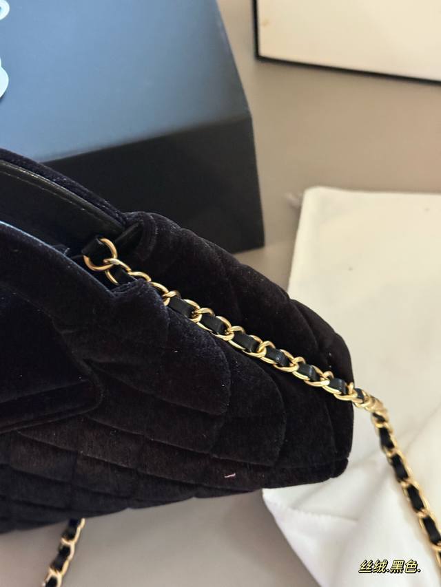 Box Included DDD Size: 20*12Cm DDD Baby, you are a little velvet dark chocolate cake! Chanel 24A black and gold velvet Kelly bag shape DDD Meeting velvet material DDD Super vintage feel~~ DDD