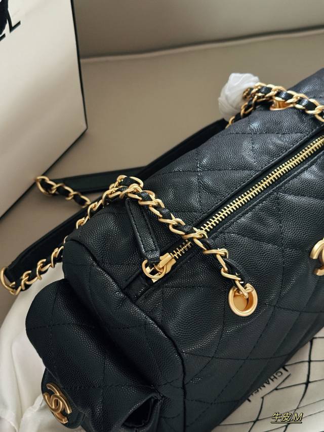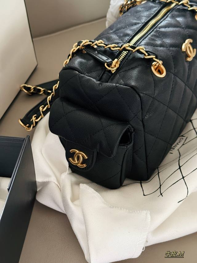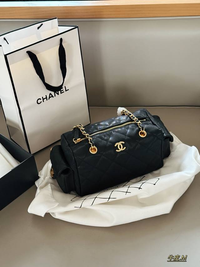 Comes with a box, made of cowhide leather. Size: 25*15cm. Chanel 25K bowling bag. A different feel, more casual and relaxed. Two small side pockets, just the right size, very stylish when worn!