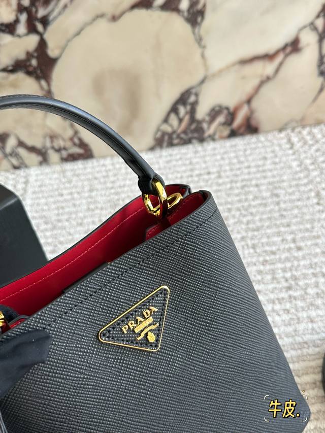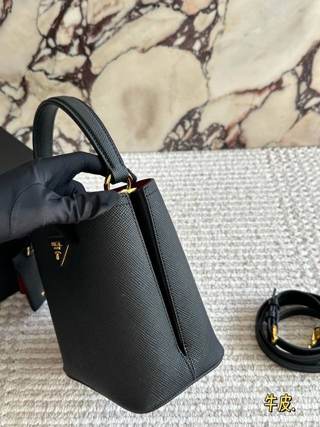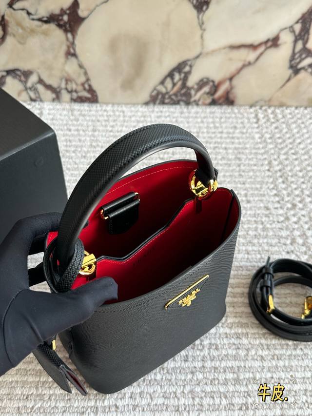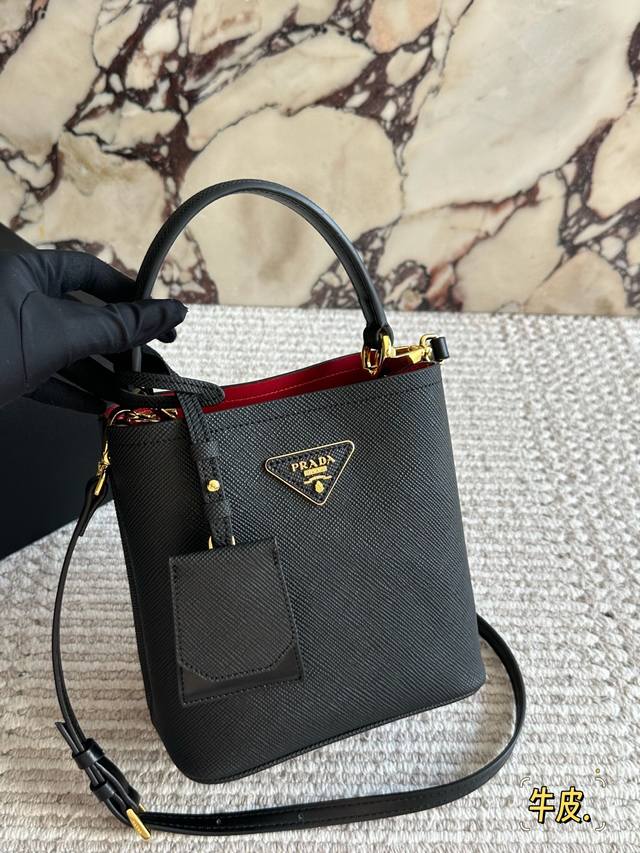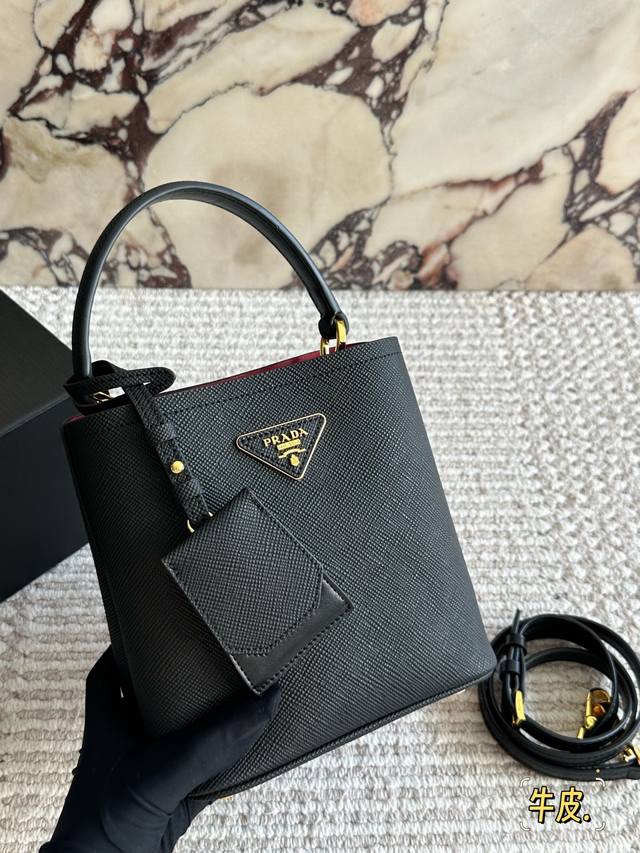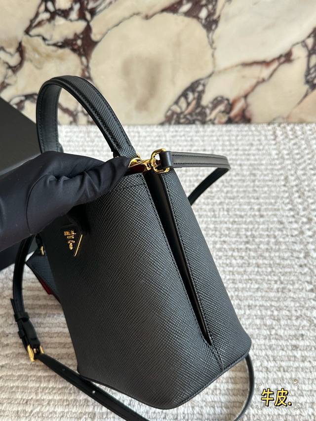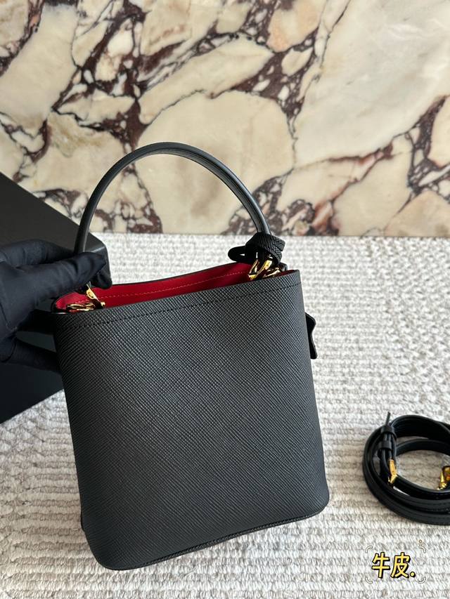 Comes with box, genuine leather. Size: 18*18cm. Prada bucket bag. I love bucket bags so much!! My most frequently used bag! Perfect for both casual and work occasions. Original genuine leather! Original hardware!