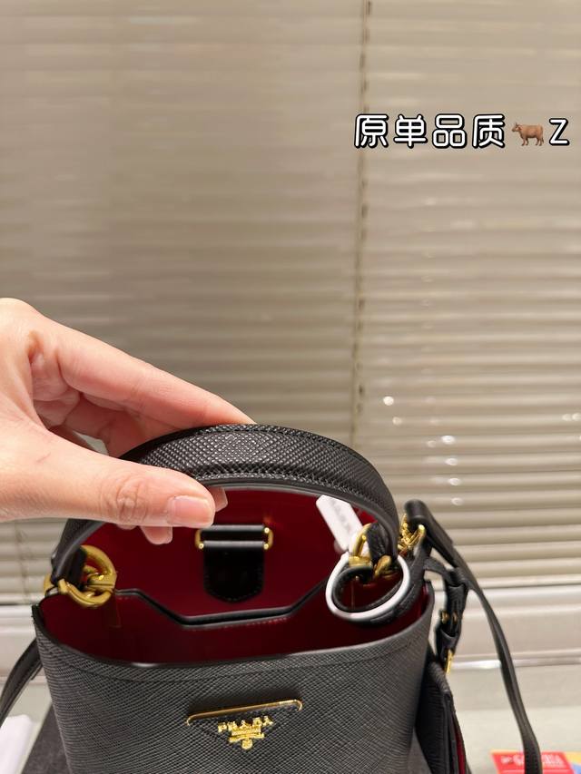 Comes with box, genuine leather. Size: 18*18cm. Prada bucket bag. I love bucket bags so much!! My most frequently used bag! Perfect for both casual and work occasions. Original genuine leather! Original hardware!