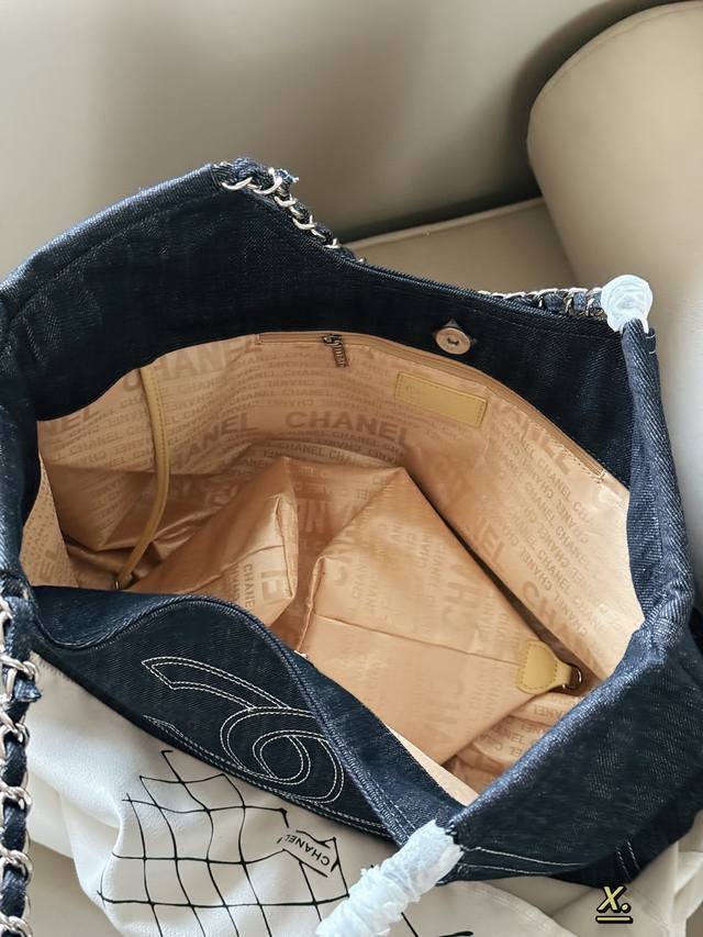 Comes with box DDD Size: 44*28Cm DDD New arrivals are coming soon DDD Vintage DDD Chanel denim tote bag DDD The same style worn by Faye Wong and Bai Libai! DDD Loved by many girls DDD The underarm bag has a great feel DDD