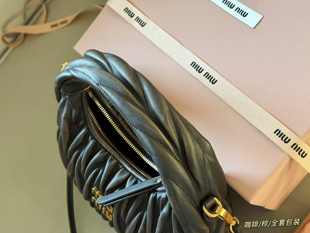 Comes with full lambskin packaging. Size: 20*17cm. A versatile and stylish Miu Miu bag, perfect for the sweet and edgy girl. A vintage-inspired Miu Miu Wander bag. Easy to match with any style. The princess has arrived! The charm of coffee brown is irresistible. A must-have for this fall/winter, it's practically the "king" of the retro world!