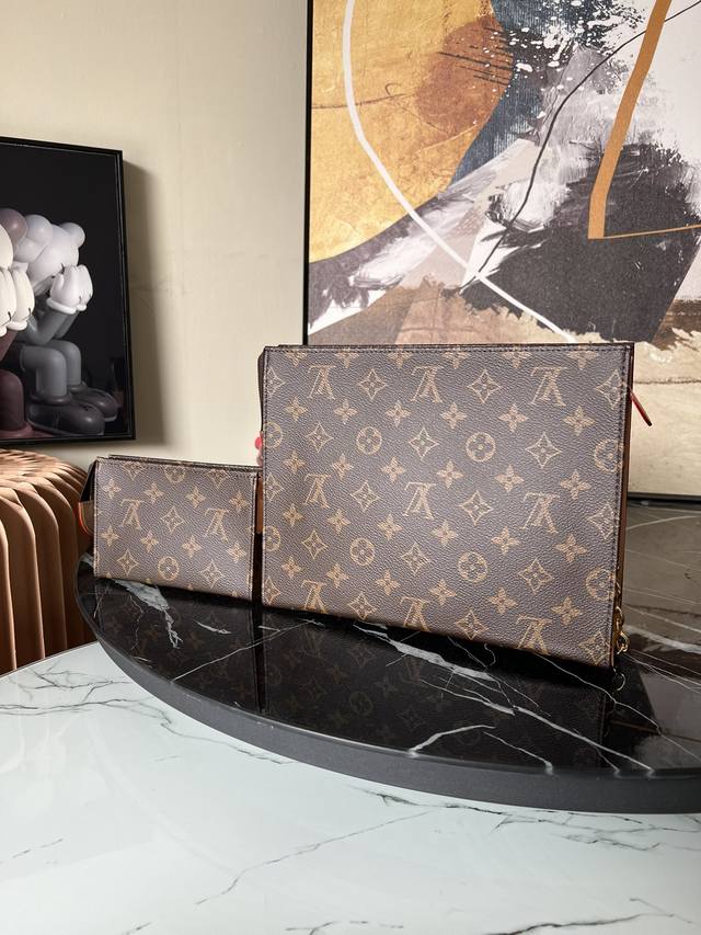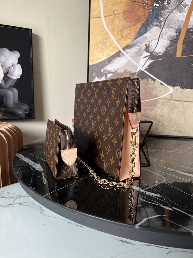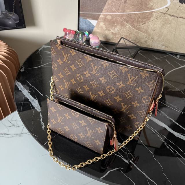 Factory P Price M81412 Top Original Mother-And-Daughter Bag Double Bag Chain Bag This Small And Stylish Pochette Voyage Medium Handbag Is Made Of Damier Graphite Checkered Coated Canvas Material. It Is Versatile And Can Be Placed In The Bag As A Travel Bag Or Held In The Hand To Show Fashion Style. The Spacious Bag Space Plus The Support Board Design Make It Easy To Take Personal Necessities. Size: 26 20 5 Cm