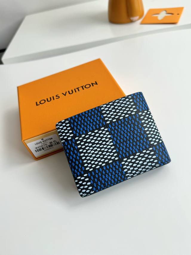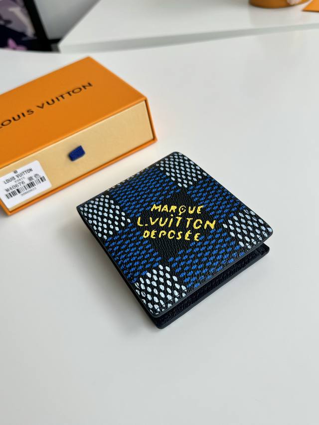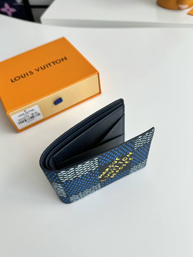 Factory P price Overseas original M40676 Blue exclusive real shot! This Multiple wallet is made of Pharrell Williams' Damier Heritage coated canvas, injecting the original Damier vintage style into the large checkerboard pattern, and then using the handwritten Marque L.Vuitton D