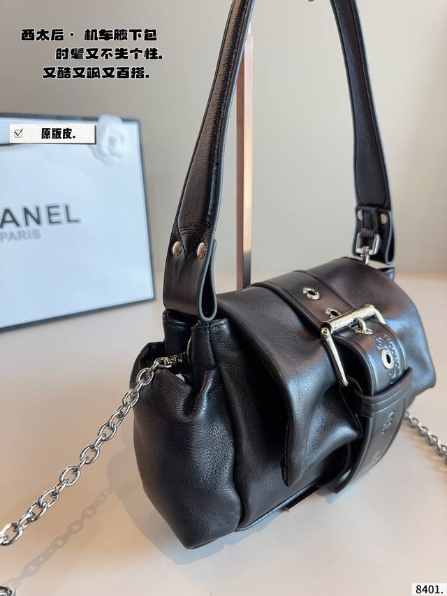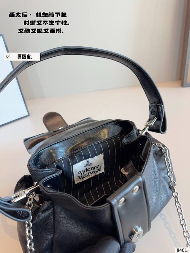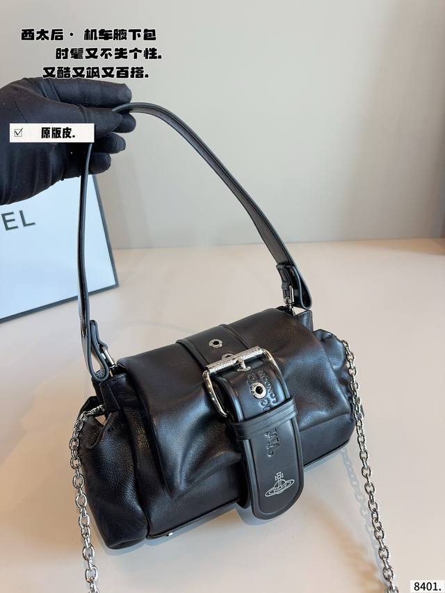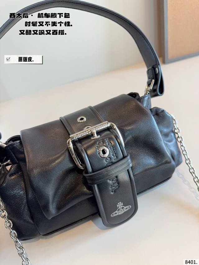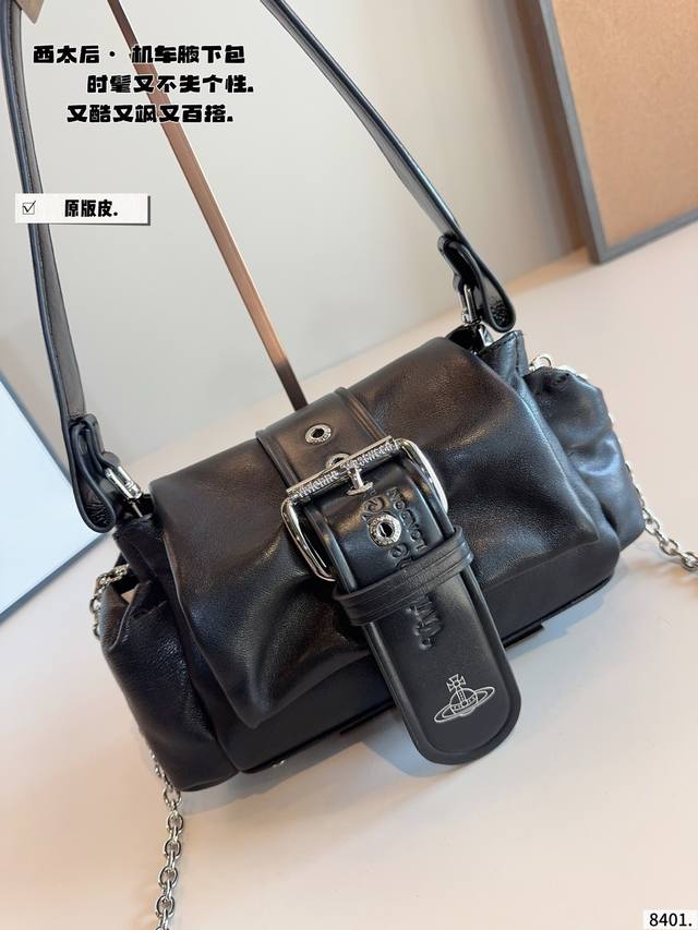 Genuine Leather. Vivienne Westwood Motorcycle Shoulder Bag. Casual yet elegant. Perfect for commuting, casual wear, and everyday use. A must-have for cool girls. Size: 21*7*13cm.