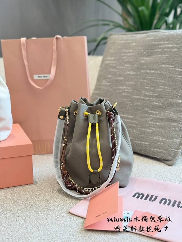 D Miumiu's Latest Canvas Small Bucket