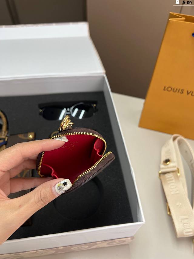 lv Jungle Box Set Glasses + Pendant + Coin Purse A-09 Size 24 19 Folding Box