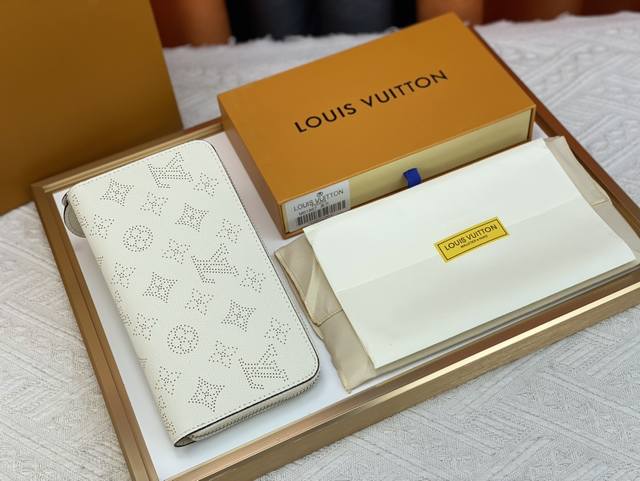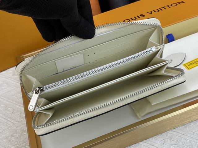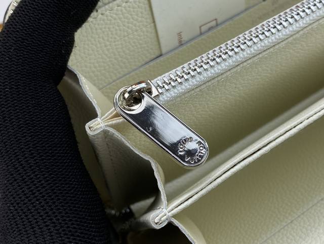 M61867 This practical Monogram canvas wallet has a zipper closure and can hold banknotes, coins and documents. 19 X 10 X 1 Cm Length X Height X Width 8 credit card slots - Open banknote compartment - Zippered coin compartment - 3 large compartments for tickets and passports - 2 inner patch pockets - Shiny gold metal hardware
