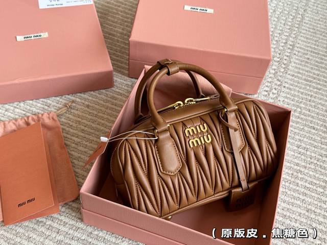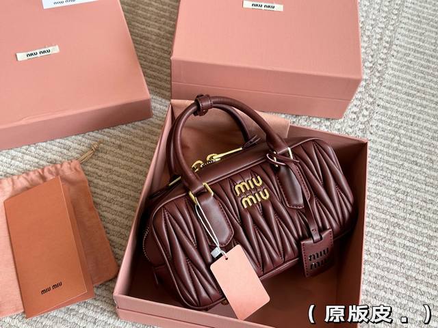 Original leather full packaging. Size: 23*12cm. Miumiu bowling briefcase. The bag has just the right amount of sweetness! It's hard not to love it! Can be carried by hand or worn crossbody. It's definitely not a small, useless bag; it has plenty of capacity! It makes you look like a Miumiu princess!
